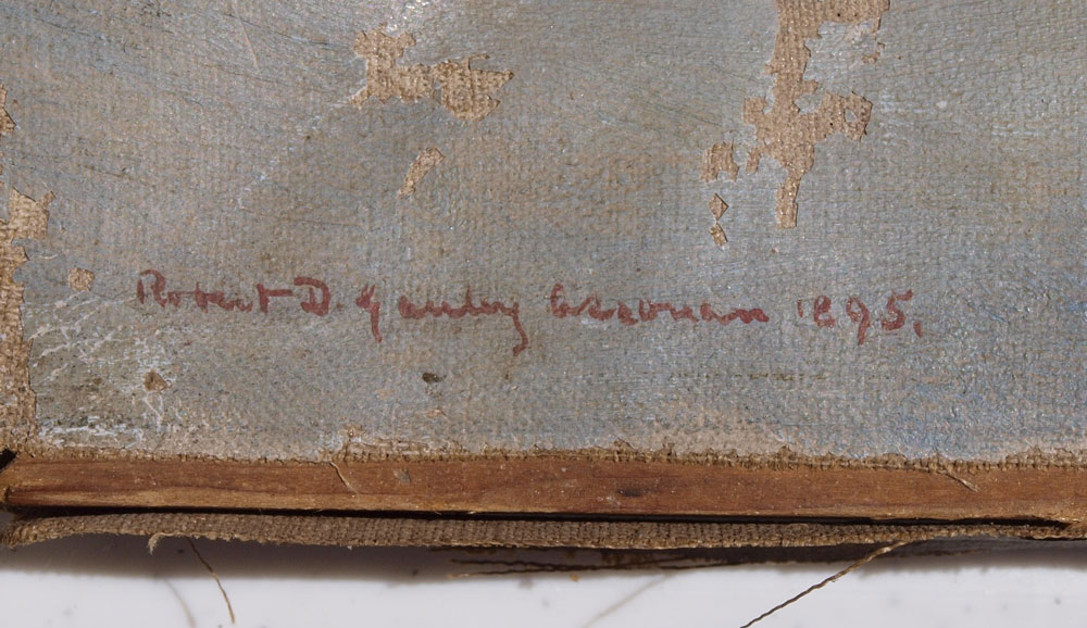 GAULEY, Robert, (American, 1875-1943): Desert Landscape by the Shore of a River,Lake, or Sea, Oil/Canvas, 12'' x 16 7/8'', signed lower left Robert D Gally Arabian?, Dated 1895, unframed exhibition sticker 98 affixed verso.