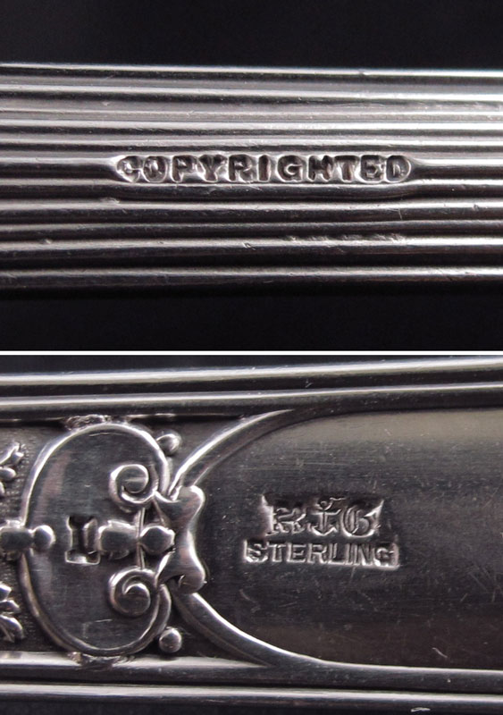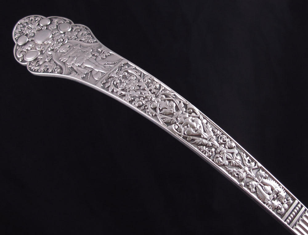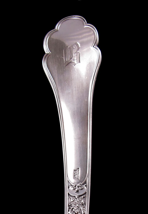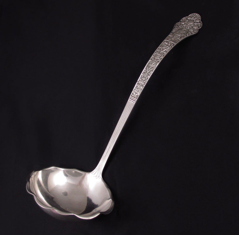 GORHAM MEDICI STERLING PUNCH LADLE: Sterling silver punch ladle in the Medici pattern by Gorham. Monogrammed B and marked copyrighted. Approx. 7 troy oz.