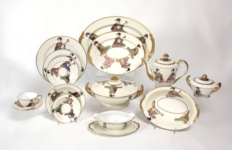 SHOZAN OCCUPIED JAPAN CHINA SERVICE: Approx. 109 pieces to include 11 dinner plates, 12 soup bowls, 16 salad plates, 15 bread plates, 16 desert bowls, 15 cups, 16 saucers, large platter, small platter, open vegetable bowl, gravy, covered vegetable bowl, teapot, cream, sugar.