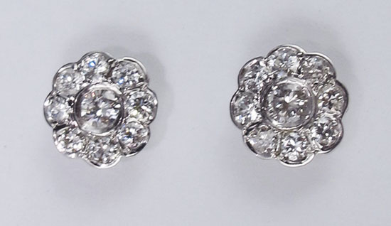 14K 1.75 CTW EARRINGS: 14K white gold earrings contain eighteen round brilliant cut diamonds Weight: 1.75 Ct. Approx. The diamonds average SI-I1 in clarity and H-I in color. The diamonds are prong and bezel set. Post and nut closures. Weight: 2.6 grams.