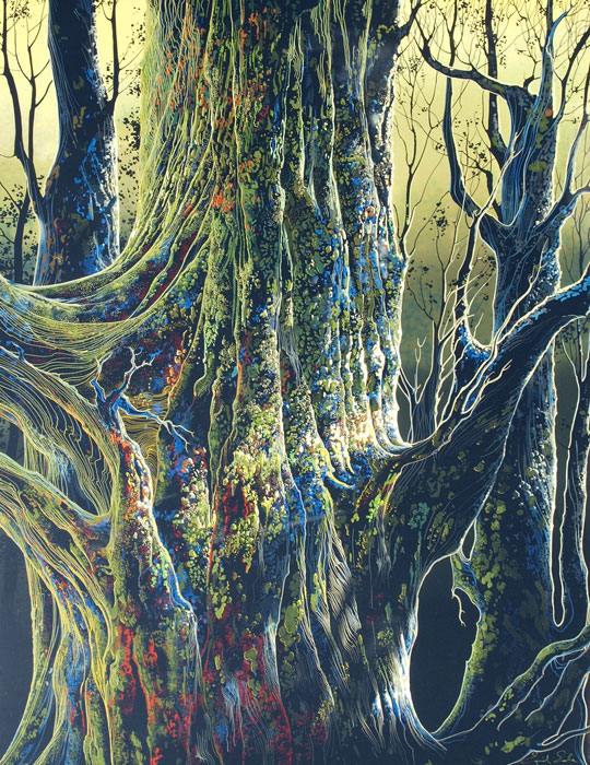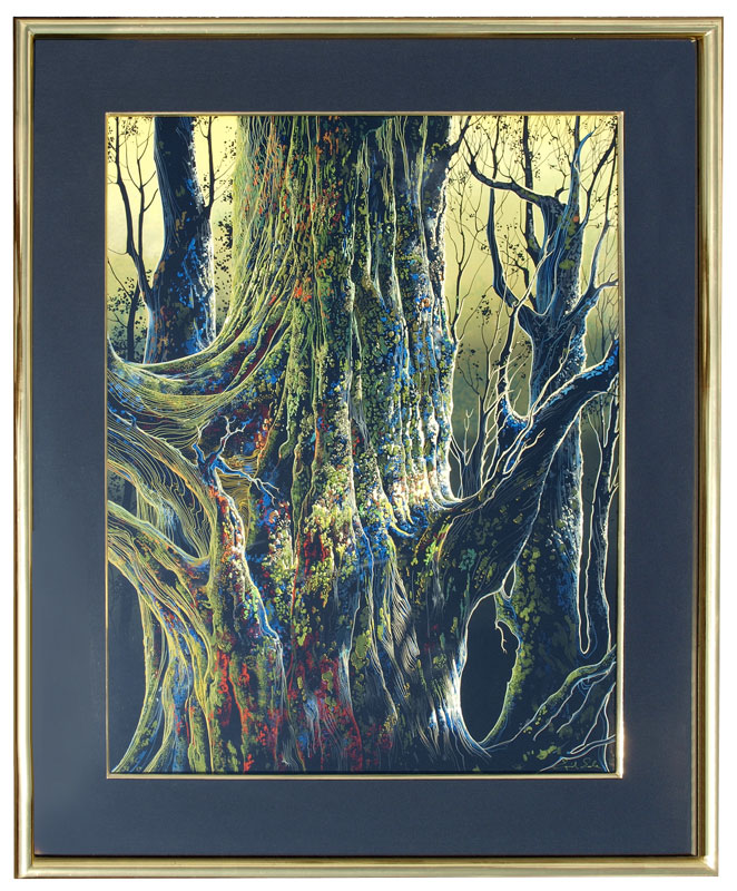EARLE, Eyvind, (American, 1916-): ''Ancient Tree'', Serigraph, sight size, 39'' x 29 1/2'', signed lower right, numbered HC (H'ors Concours 38/50), encased in custom gilded wooden frame, 51 1/2'' x 41.