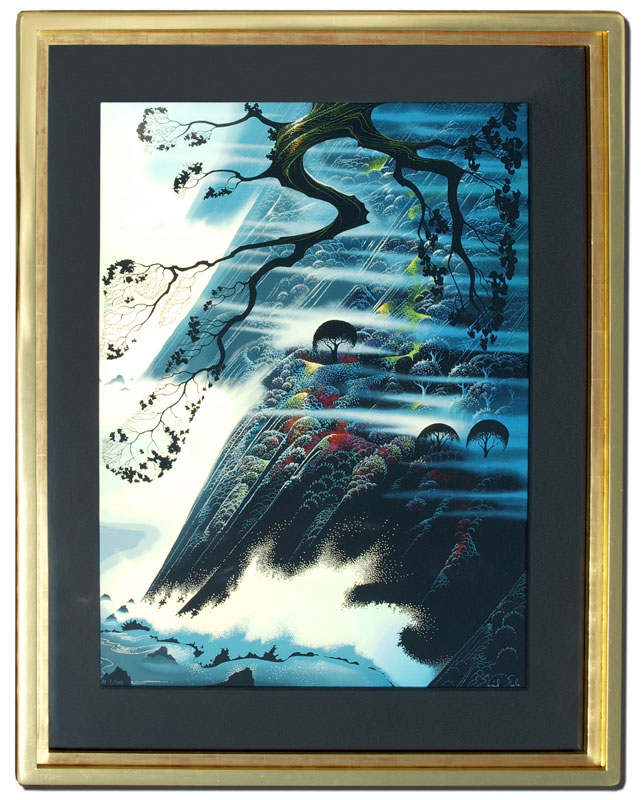 EARLE, Eyvind, (American, 1916-): ''Fog Light'', Serigraph, sight size 39'' x 29'', signed lower right, numbered lower left (Artist Proof 1/108), encased in exquisite custom gilded frame with a width of over 2 1/2'', over all 52'' x 42''.