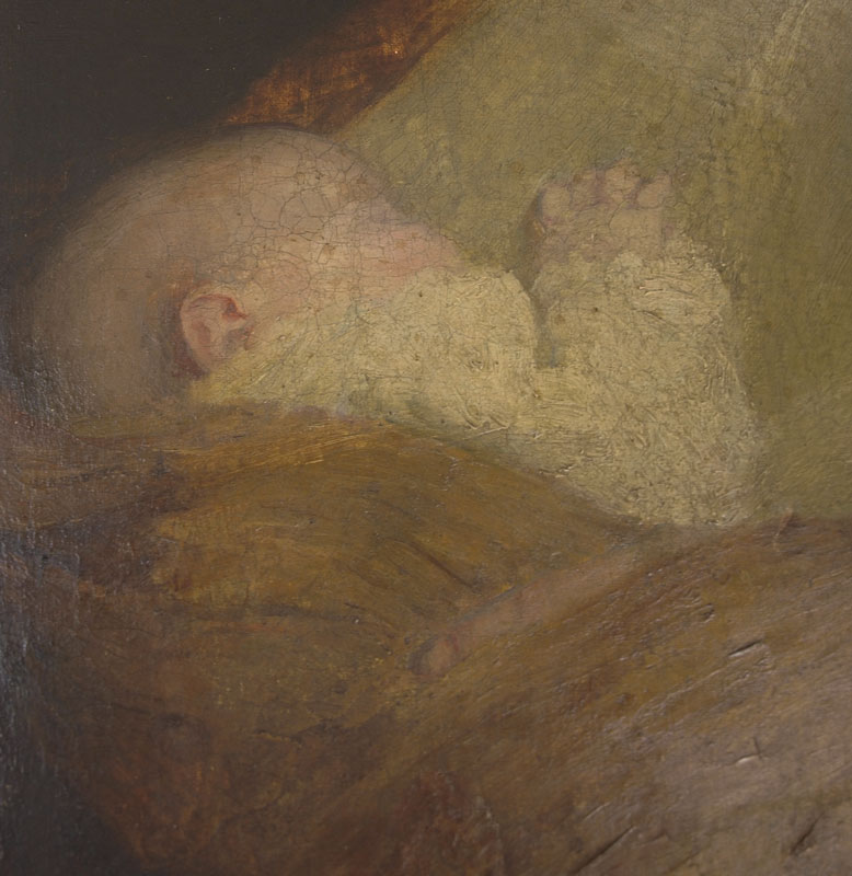 CONDITION: Laid down to board, scattered cracklure throughout, needs cleaning. Sold as is.