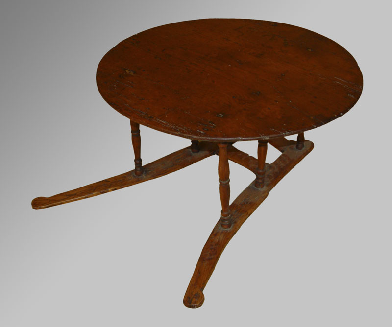 19TH CENTURY FRENCH CHEESE WHEEL CARRIER: These carriers were placed on the shoulders of 2 men to transport heavy cheese wheels from location to location. Marked CL CL 17 underneath. MEasures 11 3/4'' h. x 26 3/4'' x 23''.