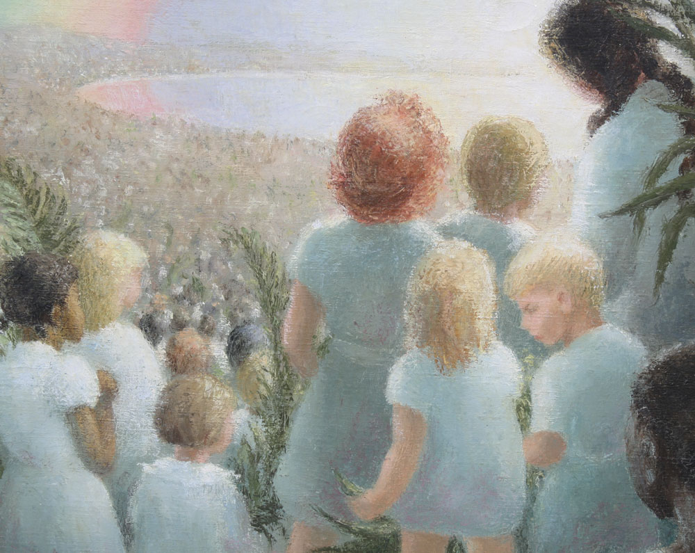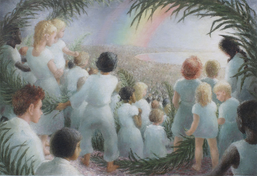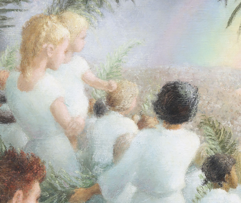 LEECH, Dorothy Sherman, (American, 1913-): ''Revelations 7:9'' 1950, Oil/Canvas, 25'' x 36 1/2'', signed lower right, titled and dated on stretcher verso, painted white frame, 33'' x 44''.