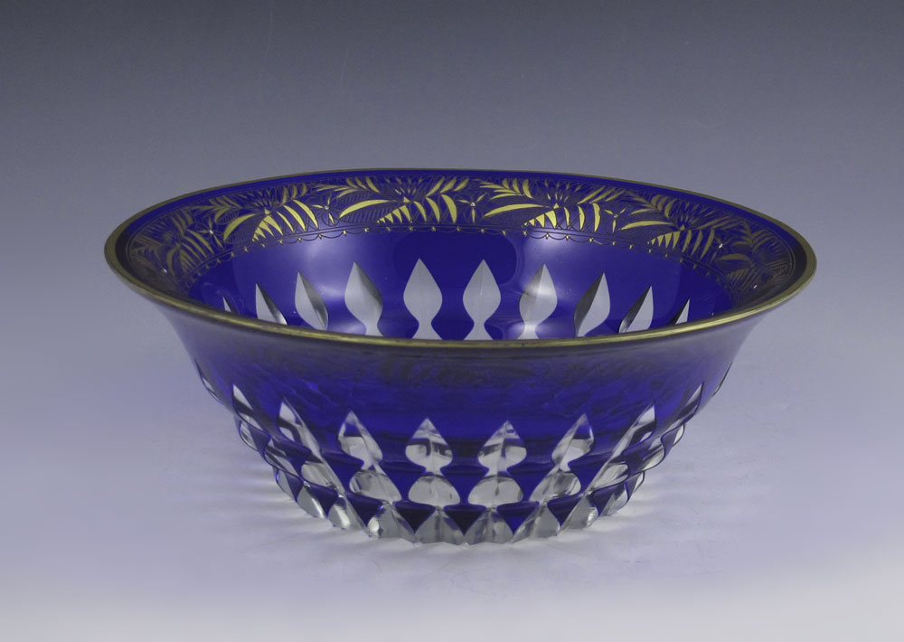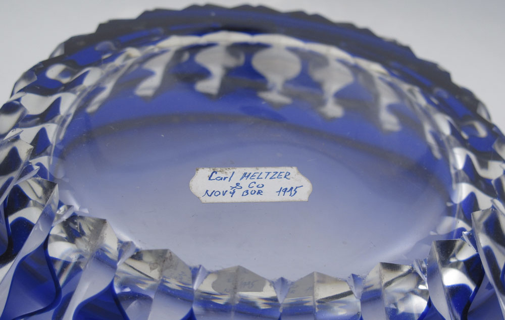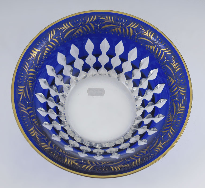 CARL MELTZER COBALT CUT TO CLEAR BOWL: Bohemian glass bowl, 3 1/2'' h. x 9 1/4'' dia.