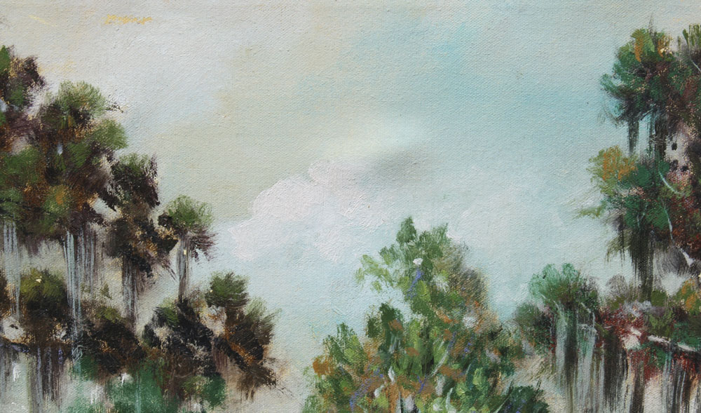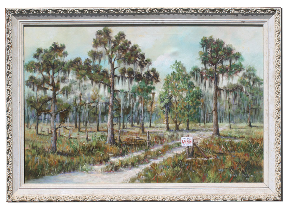 HAWKINS, Frank S., (American, 20th C): Florida Scrub Landscape for Sale, Oil/Canvas, 24'' x 36'', signed lower right and dated '68, painted and gilded gesso frame with wear, 28 1/2'' x 40 1/2''.