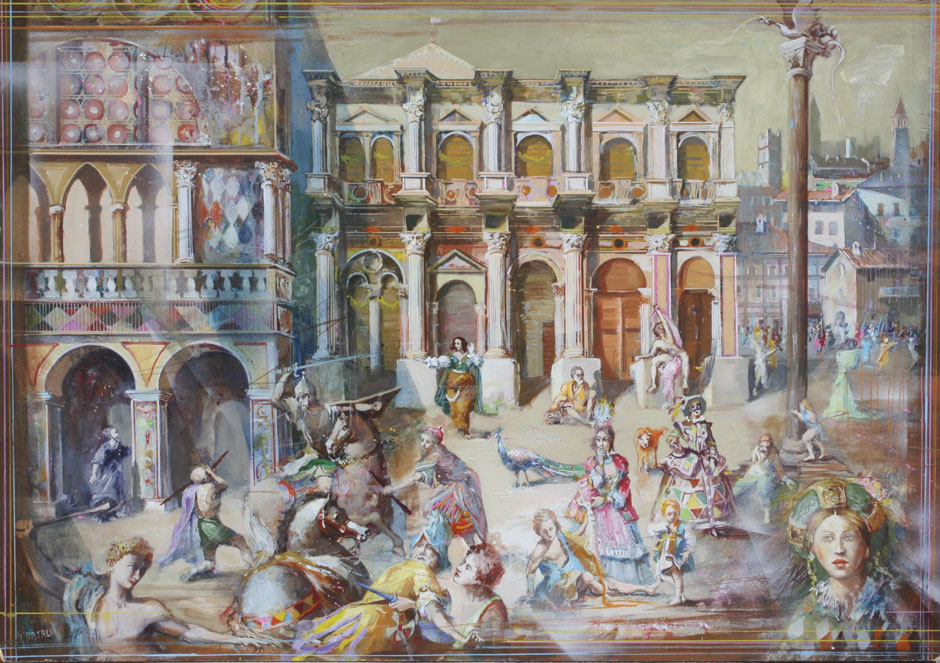NATALI, G. (Italian, ): ''Capriccio In Piazza'', Oil/Board, 27 1/2'' x 39 1/4'', signed lower left, titled verso, unframed.
