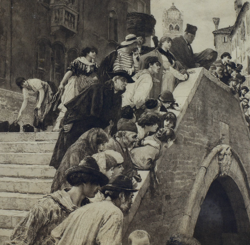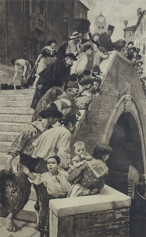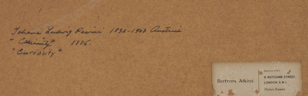 RIOS, Ricardo de los, (Spanish, 1846-1929): ''Curiosity'' after Passini, Engraving, sight size 26'' x 16'', pencil signed R. de Los Rios in lower left, printed by Frederick Koppel & Company, 1889, professionally framed, 33 1/2'' x 23''.