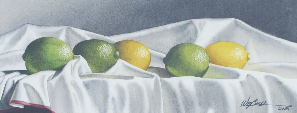 WEBER, Michael, (American, 20th C.): ''Lemons And Limes'', Watercolor, sight size 5'' x 13'', signed lower right, titled and dated 2008 verso, custom frame, 11 1/2'' x 20''.