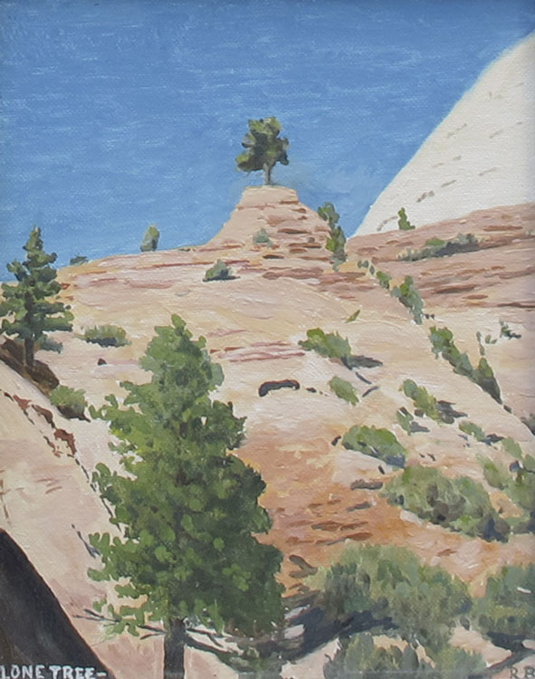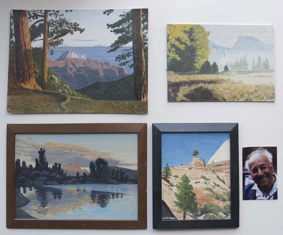 BOCK, Rudolf, (American, 20th Century): 4 Piece Southwestern landscape painting lot to include; 1) ''Fall In Yosemite Valley Summer 2004'', Oil/Canvas Board, 9'' x 12 1/2'', monogrammed lower right, titled verso; 2) ''Alpen Glow On Mount Humphrey, September, 1972'', Oil/Canvas Board, 10'' x 14'', titled verso, framed, 11 1/2'' x 15 3/4''; 3) ''A Lone Tree'', Oil/Canvas Board, 10'' x 8'', titled lower left, monogrammed RB lower right, framed, 11 1/2'' x 9 1/2''; 4) ''North Rim, Grand Canyon'', Oil/Canvas Board, 12'' x 16'', titled and dated 1992 verso, marked R. Bock, unframed.