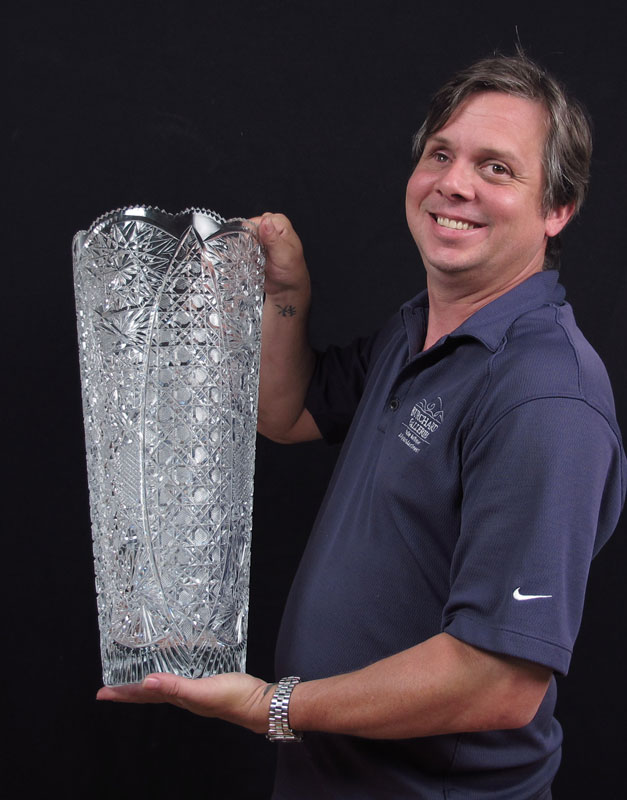 BOHEMIAN CUT GLASS VASE: 20'' tall.