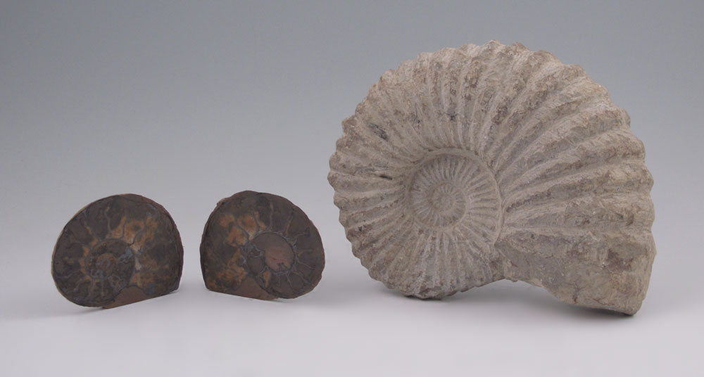 2 PIECE AMMONITE FOSSILS: To include 1) Large Procheloniceras Ammonite, Mid Cretaceous Period, Agadir Morocco. 5 1/2'' x 7 1/4''. 2) Cleved pair Ammonite, unknown region, 2 3/8'' x 3''.