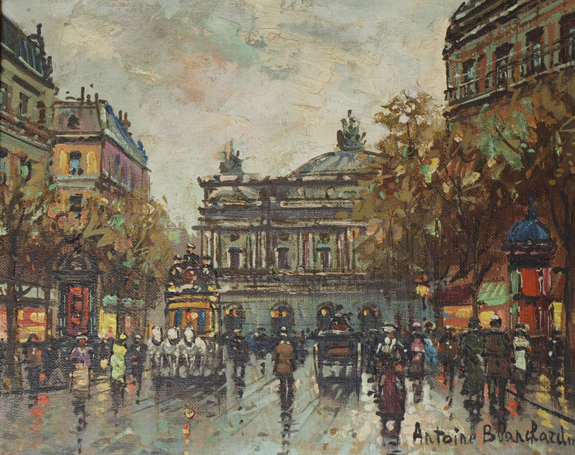BLANCHARD, Antoine, (French, 1910-1988): Parisian Street Scene, Oil/Canvas, 8'' x 10'', signed lower right, wood frame with gilded liner, 12 1/2'' x 14''.