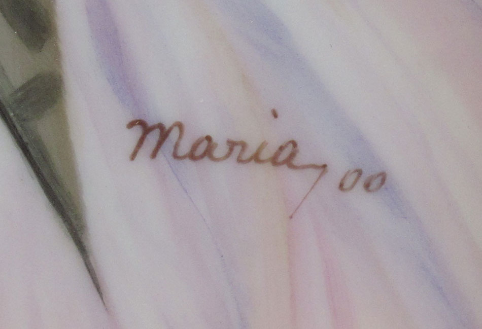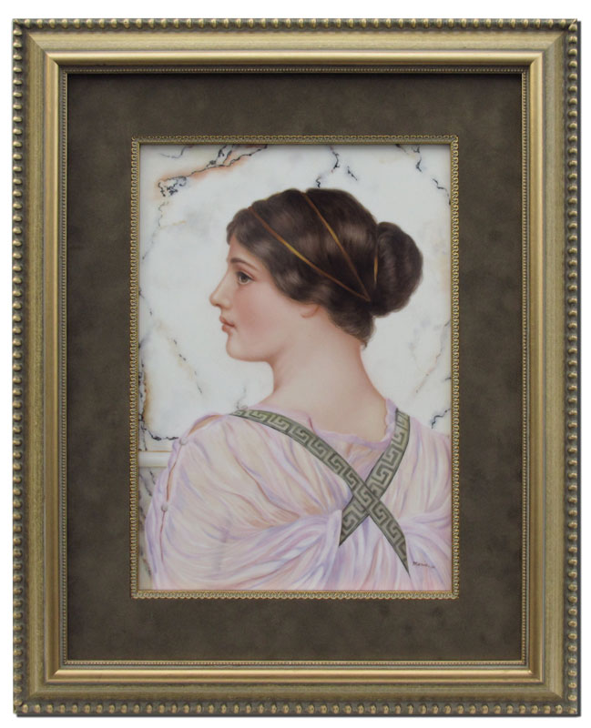 SALDARRIAGA, Maria, (American 20th C): Pre-Raffalite Style Painting On Porcelain Of A Young Beauty With Back Turned, Sight size 13 1/4'' x 9 1/4'', signed lower right Maria, dated '00, framed, 21'' x 17''.