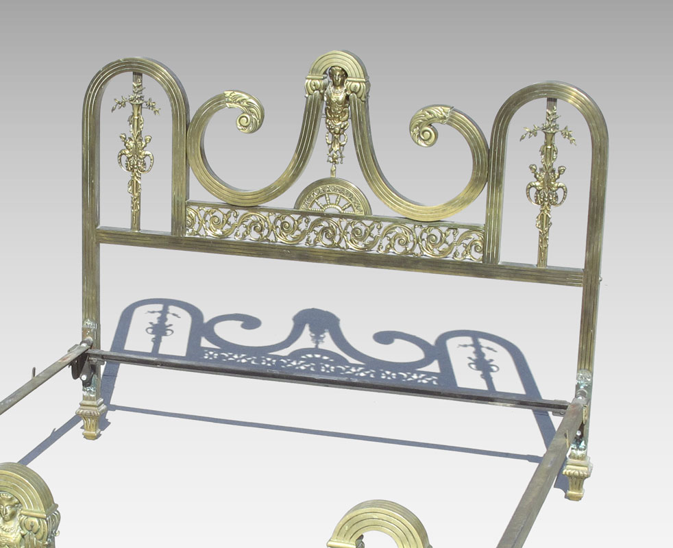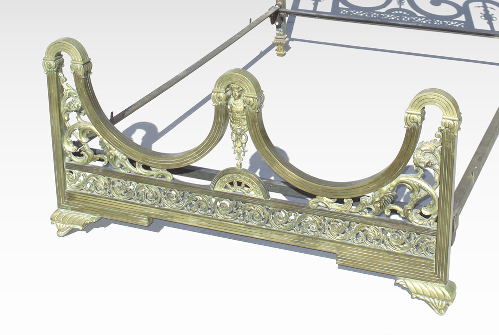 ARGENTINEAN ART DECO BRASS BED: Headboard 43'' h. x 54 3/4'', foot board 28 1/2'' h.