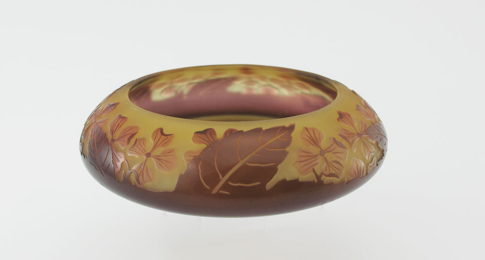 D'ARGENTAL FRENCH CAMEO GLASS LOW BOWL: Foliate motif, signed D'Argental. 1 1/4'' h. x 4 3/4'' dia.