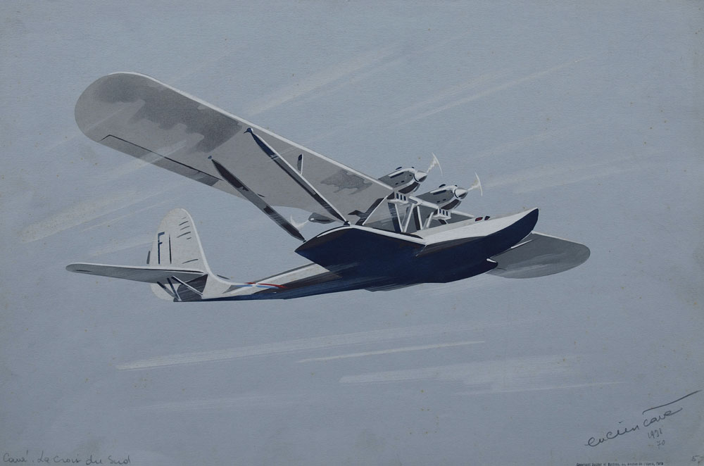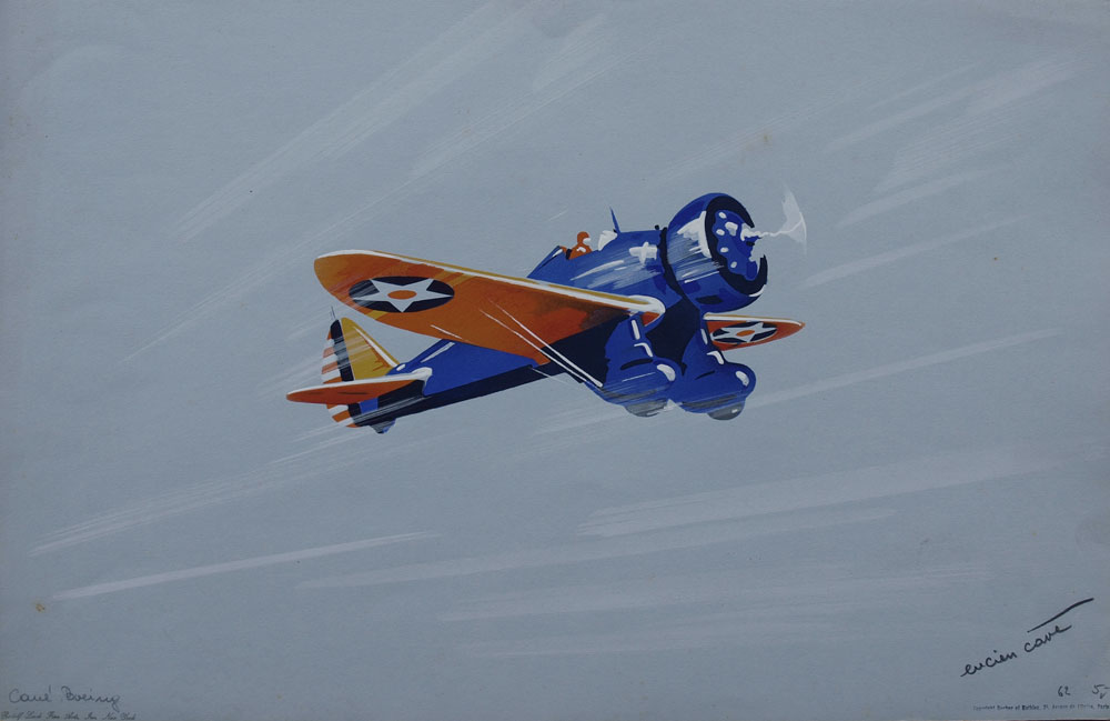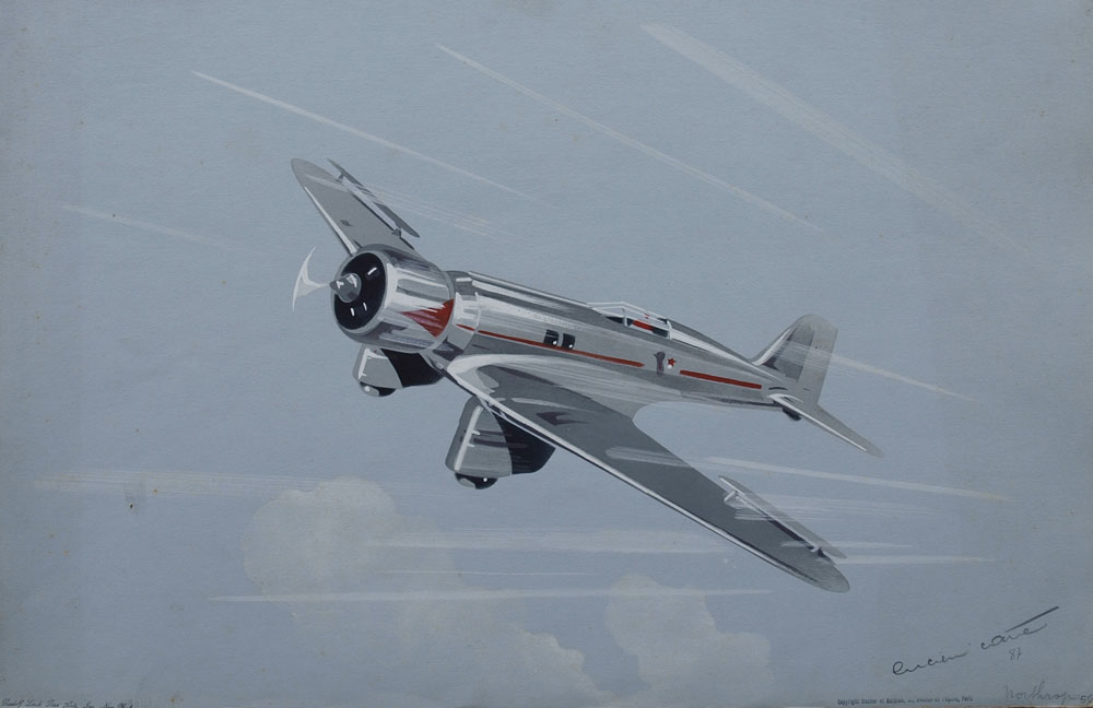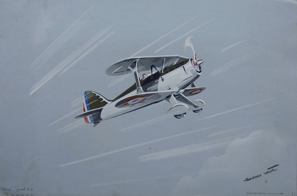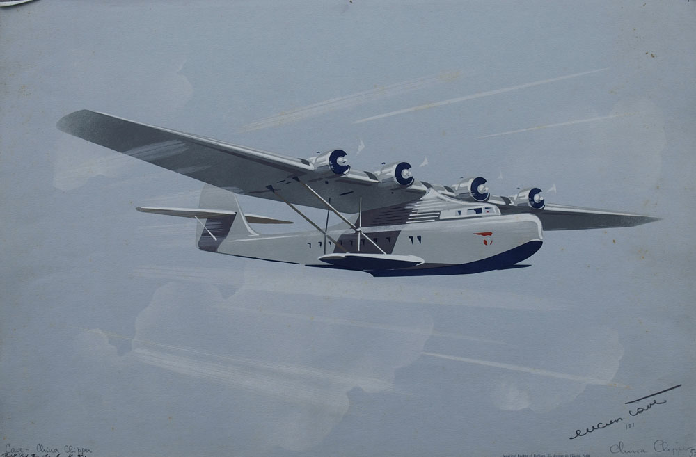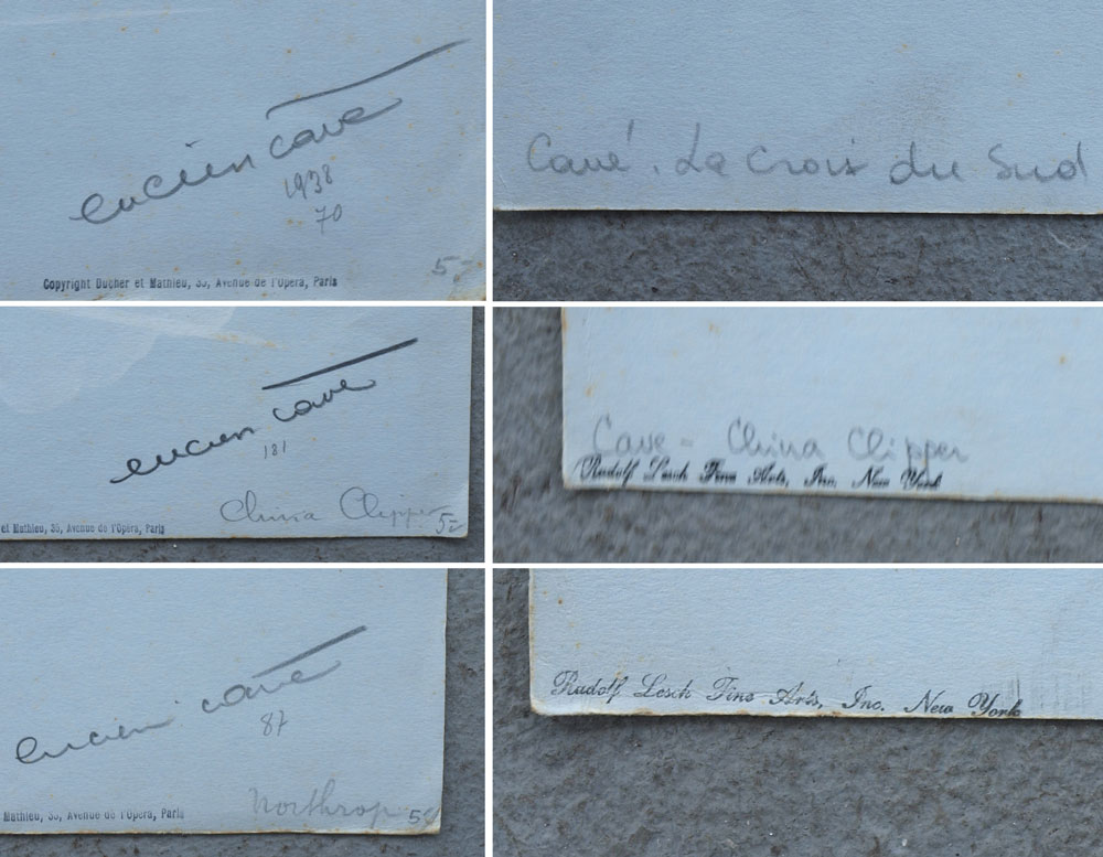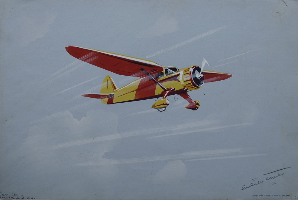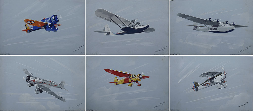 CAVE, Lucien, (European, 20th C.): 6 AVIATION ILLUSTRATIONS BY LUCIEN CAVE: To include 1) ''Boeing P-26''; 2) ''LeCrois du Sud''; 3) ''China Clipper''; 4) ''Northrup''; 5) ''Stinson''; 5) ''Spad 510'', all pencil signed and titled, each bears the Rudolph Lesch Fine Arts, New York stamp, and are unframed, each is 12 3/4'' x 19 5/8''.