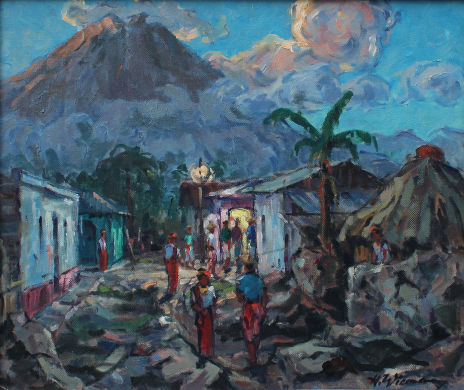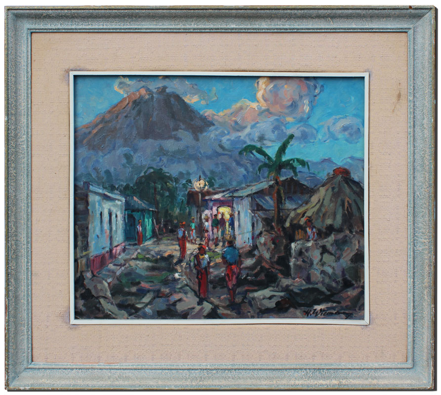WIEMANN, Hannes, (German, 1905-): Guatemalan Village, Oil/Masonite, 16 1/2'' x 20'', signed lower right, painted frame with wear, 23 1/2'' x 27''.