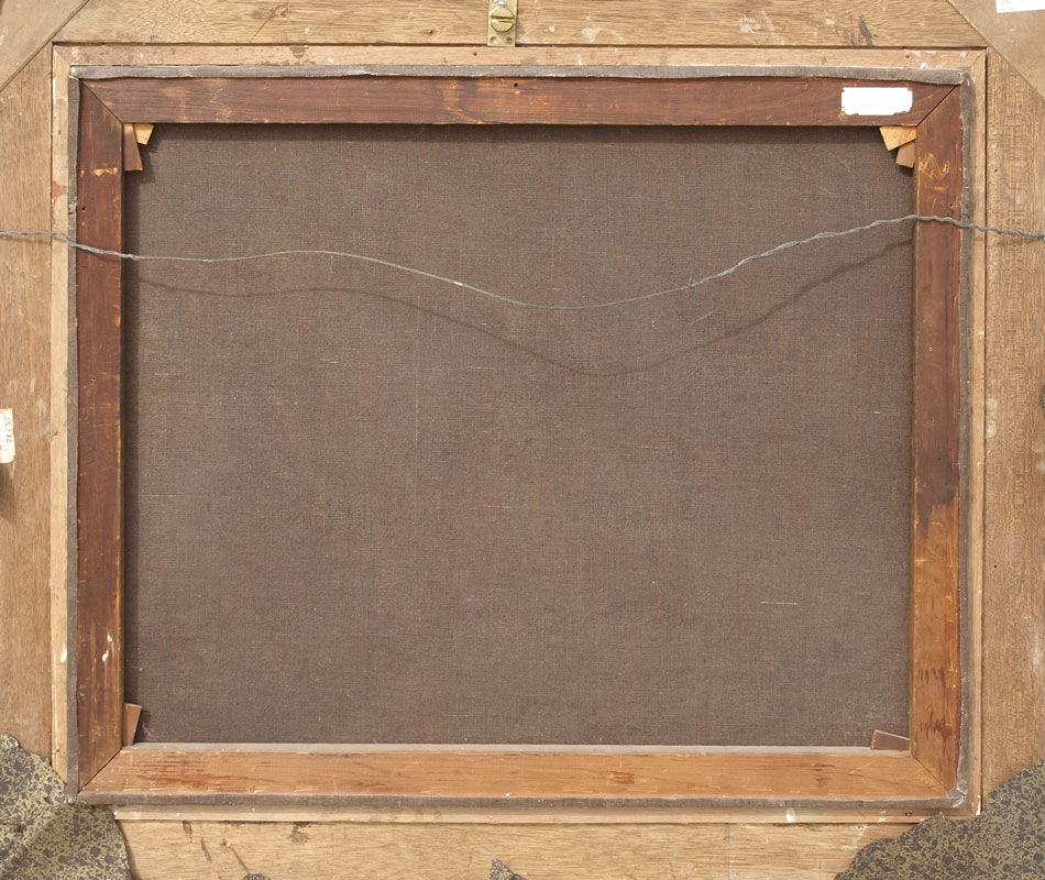 CONDITION: Has been relined, several patches of in-paint in sky.