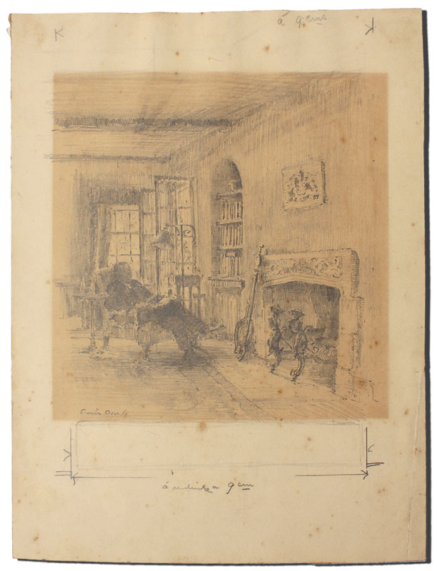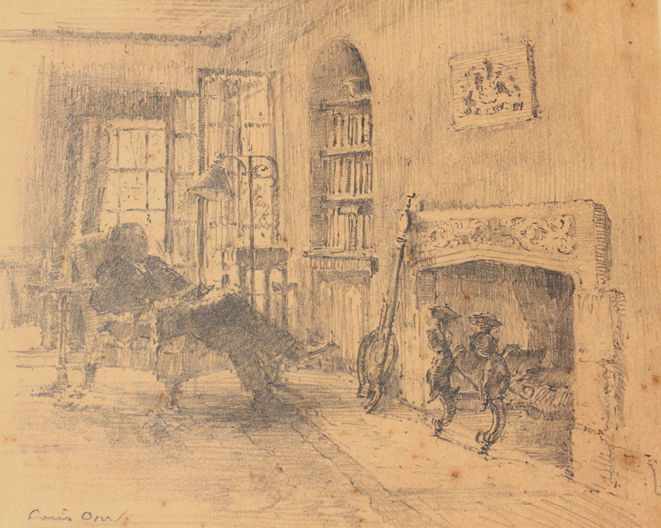 ORR, Louis, (American, 1879-1961): Interior Scene With Male Figure Reading Fireside, 10 1/4'' x 8'' with margins, image size 6 1/4'' x 6 3/8'', pencil signed lower left, unframed.