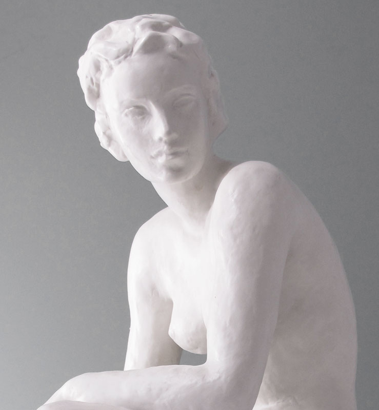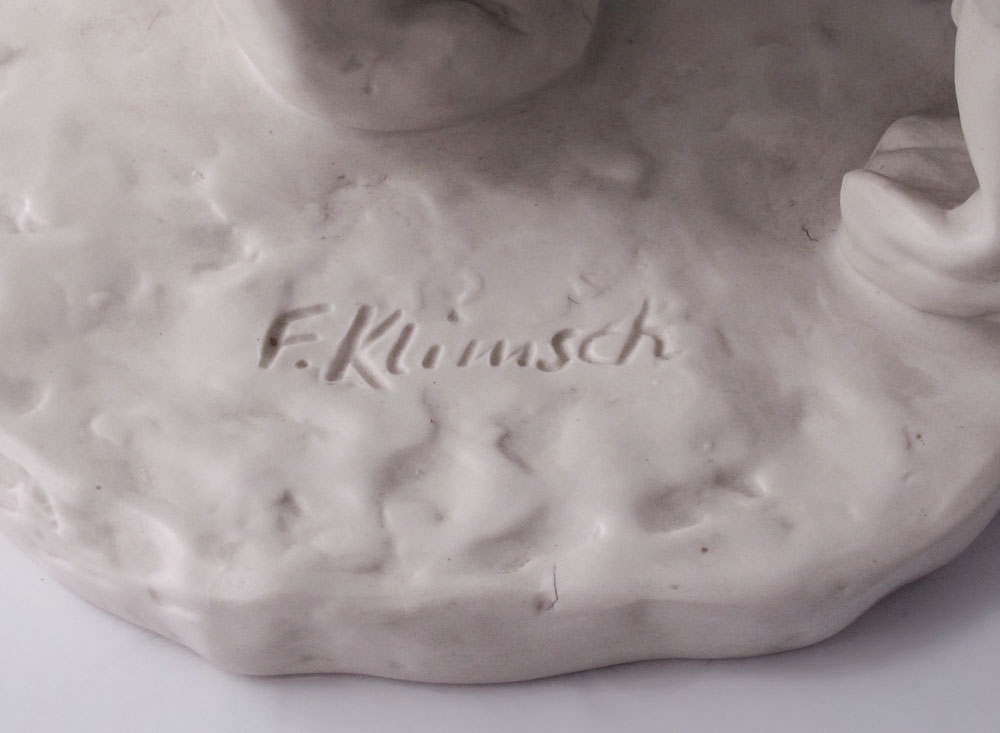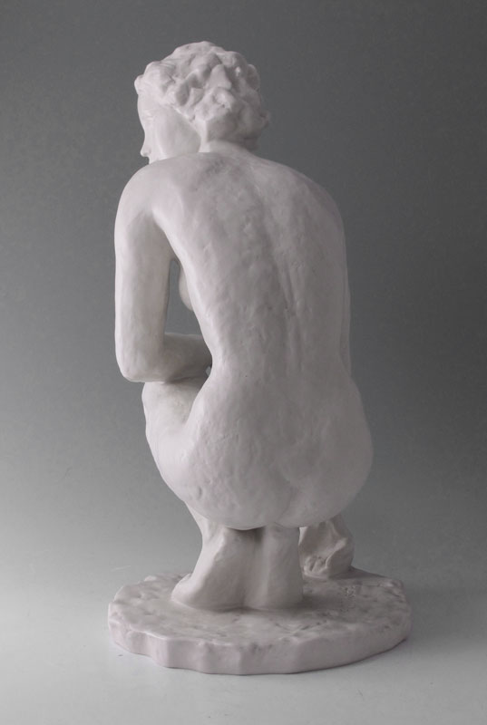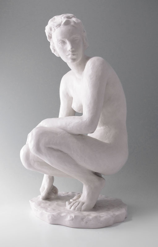 ART DECO ROSENTHAL NUDE FIGURE ''DIE HOCKENDE'': Designed by Fritz Klimsch, matt glaze, 14'' h., signed Klimsch, Rosenthal marking to base.