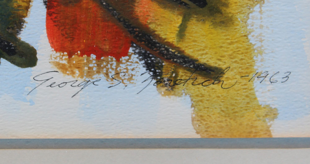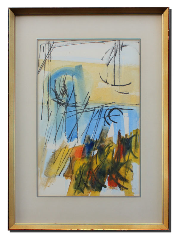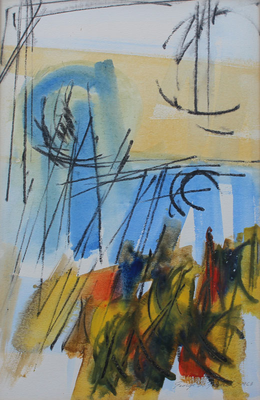 ZORETICH, George, (American, 20th C.): Abstract Composition, Mixed Media, sight size 17'' x 11'', signed lower right, dated 1963, gilded and painted frame with minor wear, 24'' x 17 1/2''.