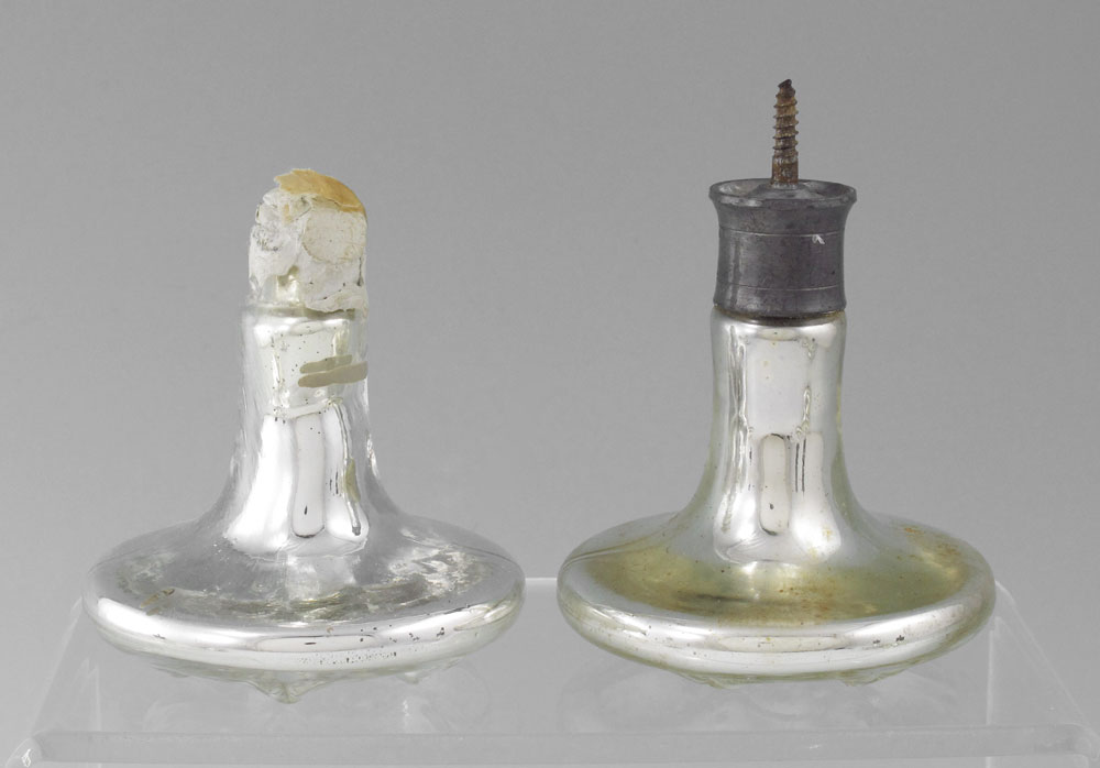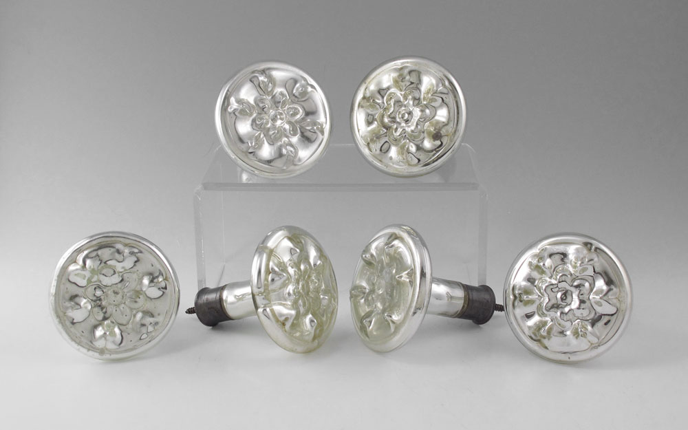 COLLECTION OF 6 MERCURY GLASS CURTAIN TIEBACKS: Rosette form front. Each measures 3 1/2'' dia. x 4 3/4'' l.