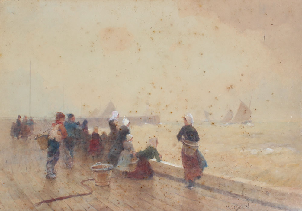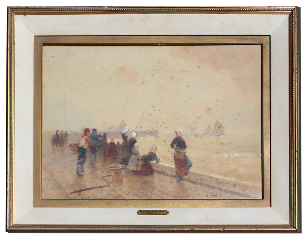CAFFIERI, Hector, (British, 1847-1932): ''Waiting for the Boats'', Watercolor, site size 14 1/4'' x 21 3/4'', signed lower right, gilded frame with wear, 20 1/2'' x 28''.