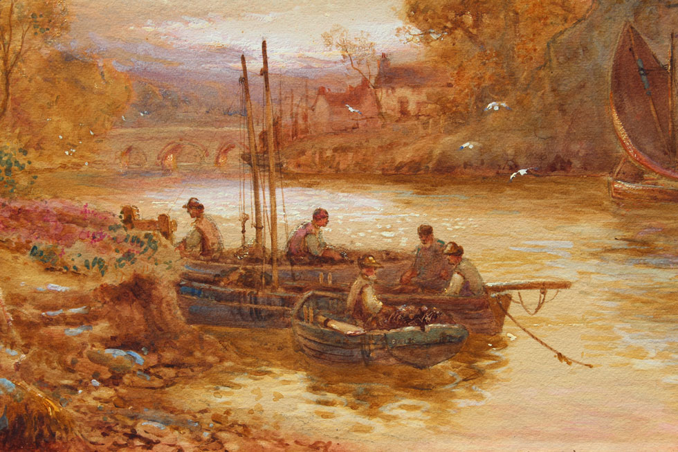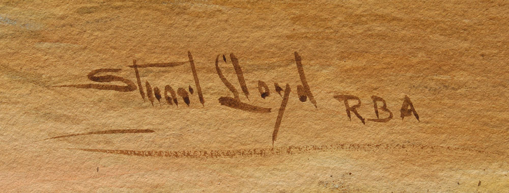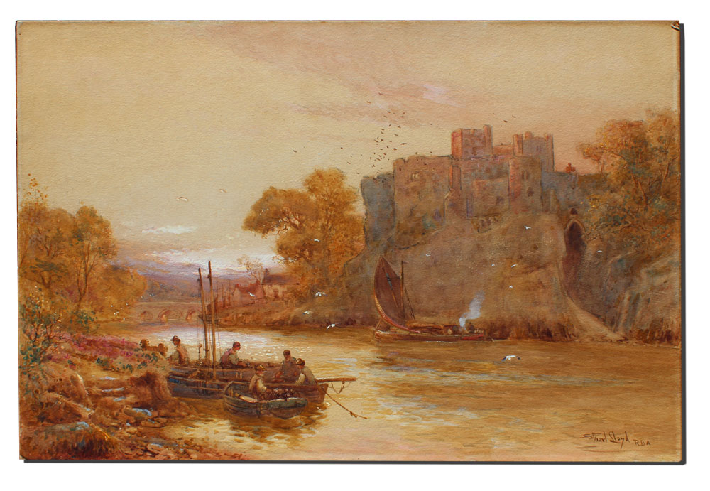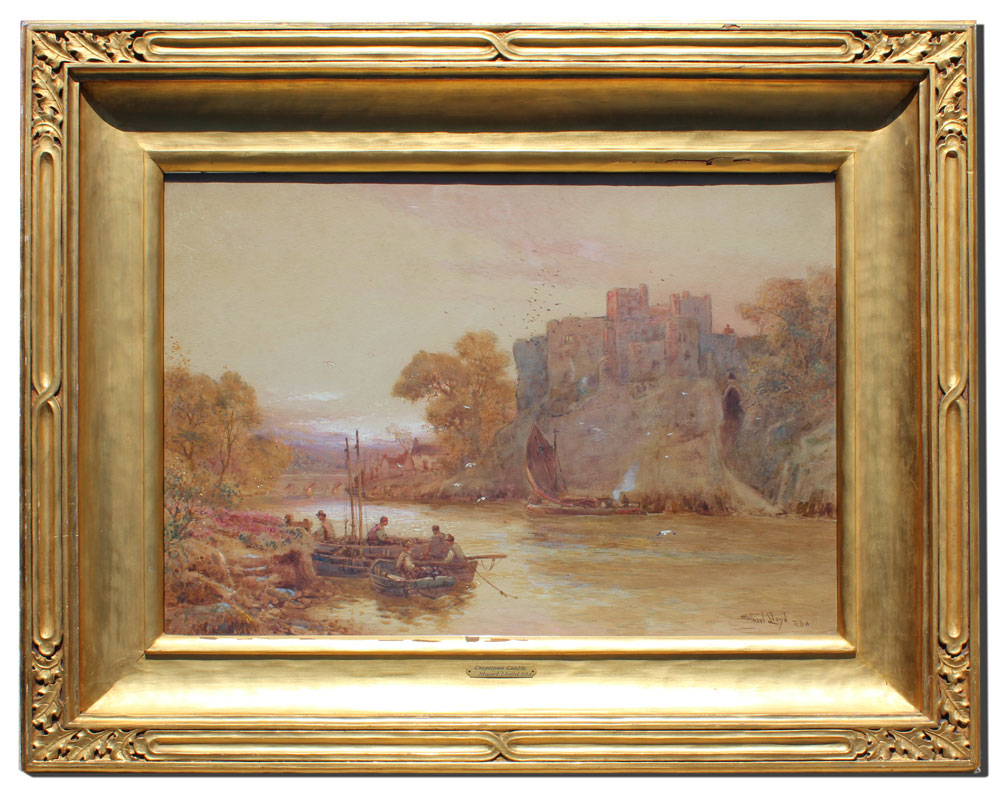 LLOYD, Stuart: ''Chepstow Castle, Monmouthshire'', Watercolor, 20'' x 30'', signed lower right 'Stuart Lloyd, R. B. A.', titled verso, encased in a period gilded and carved frame. Frame does have wear to the gilt and is in need of repair, 31'' x 41''.