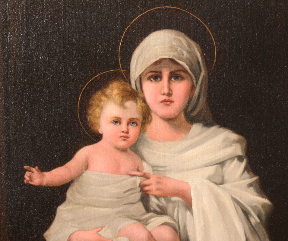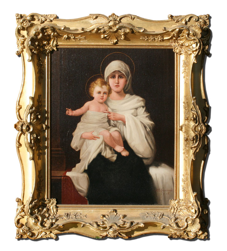 KAVANAGH, Joseph Malachy, (1856 - 1918): Madonna & Child, OIL/Canvas, 20'' x 16'', signed and dated 1908, pierce carved and gilded frame with wear, 24'' x 20''.