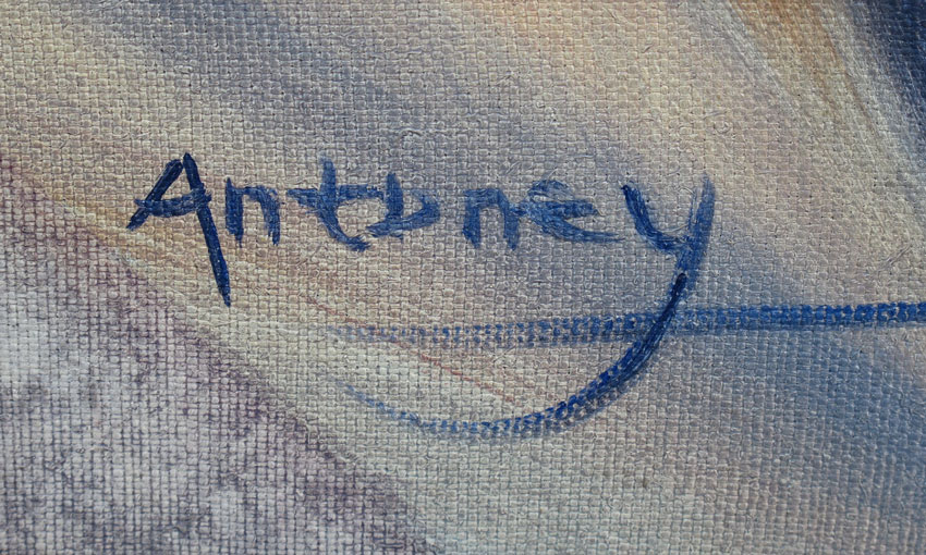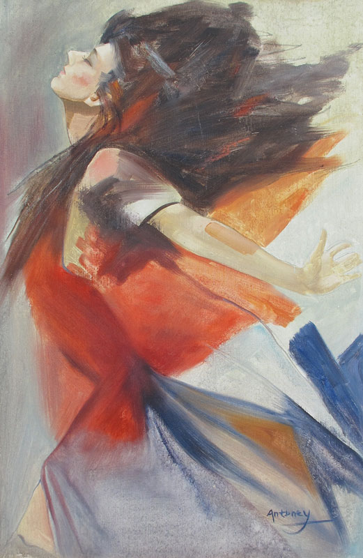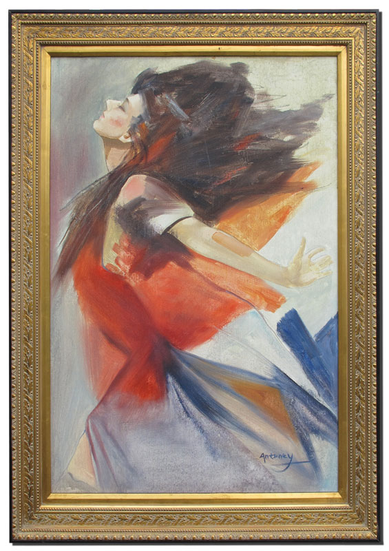 STYLISED FEMALE DANCER PAINTING SIGNED ANTONEY: 40'' x 30'', OIL/Canvas, fine framing, 48'' x 37 1/2''.