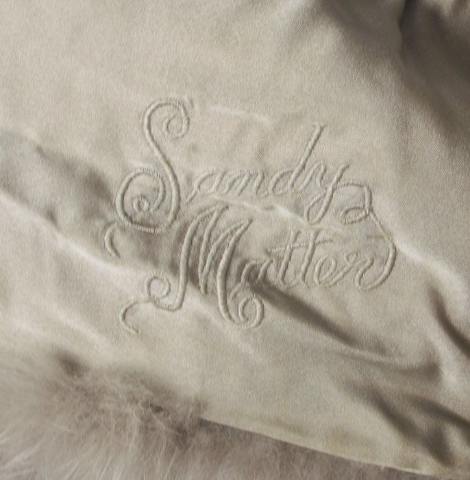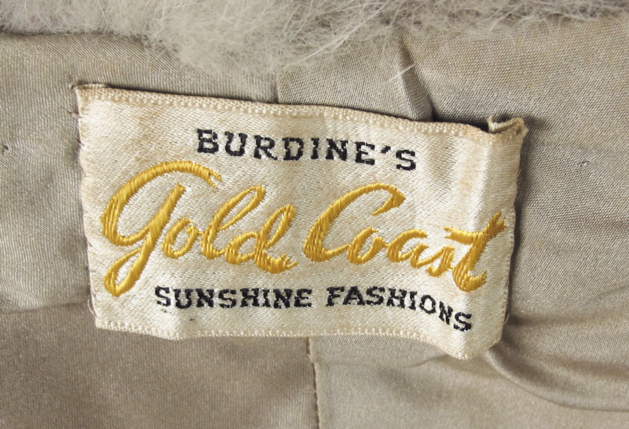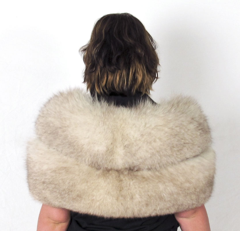 BLUE FOX FUR STOLE WRAP: Reynard NY Norwegian Blue Fox Fur Stole. Burdines's gold coat Sunshine fashions Saga Norwegian blue fox fur is lined with grey satin and monogrammed on the right hand side. Stole has two eye hook closures it is small in size and 11 1/2'' in length. Fur is in excellent condition with a small stain to the left hand side of the lining.