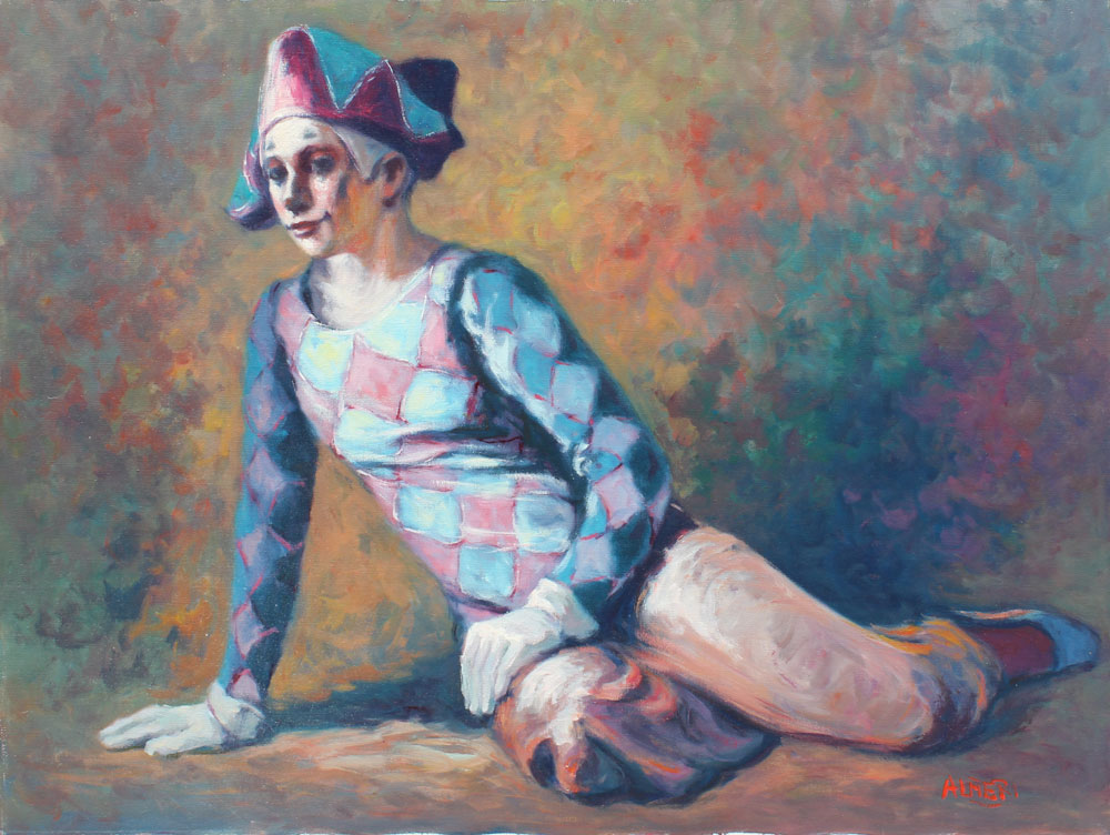 YOUNG HARLEQUIN PAINTING SIGNED ALFIERI: Oil/Canvas, 30'' x 40'', signed lower right, unframed.