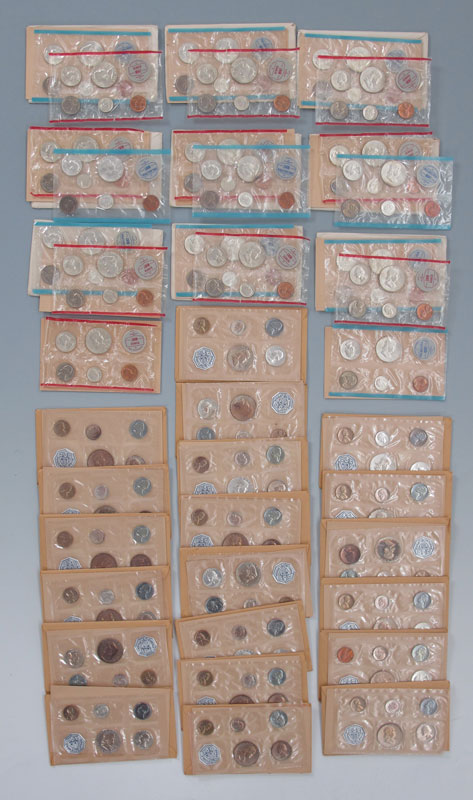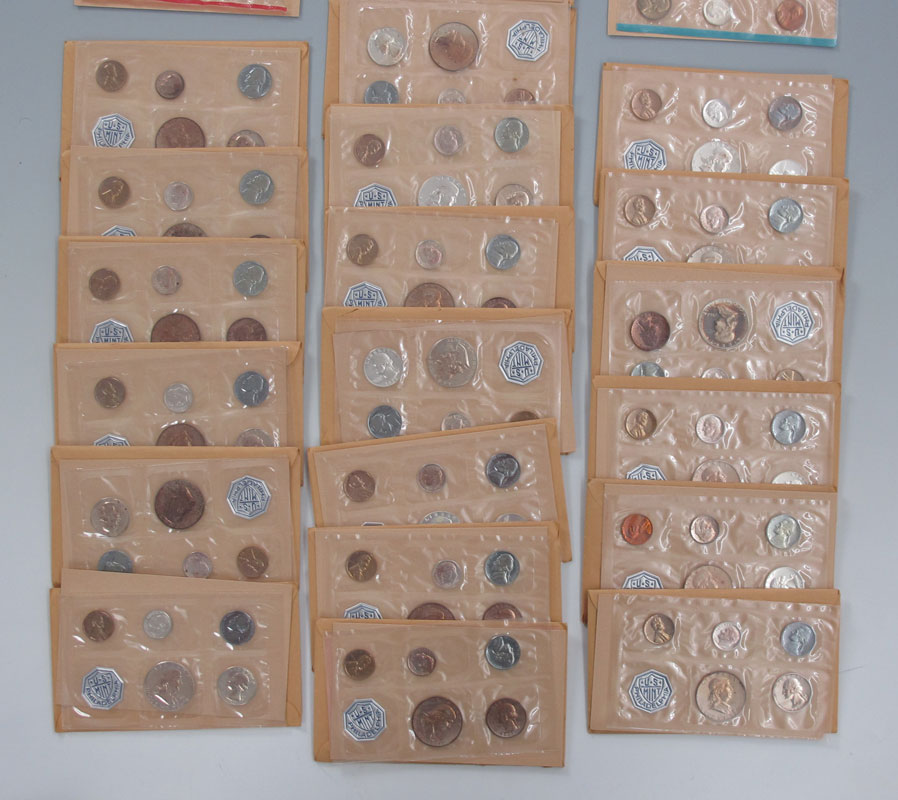 40 PROOF & UNCIRCULATED COIN SHEETS US MINT 1962: To include 20 proof sheets and 20 uncirculated sheets all from 1962. All have original envelopes. Note each sheet of coins counted individually.