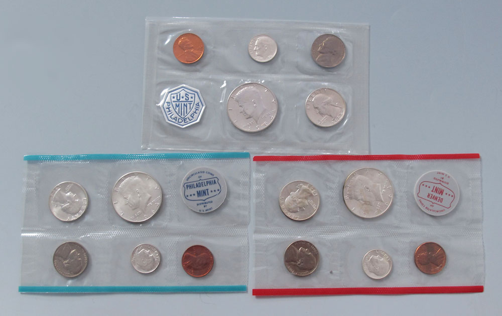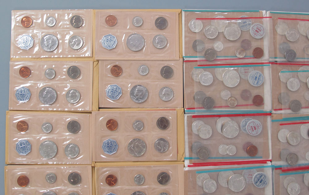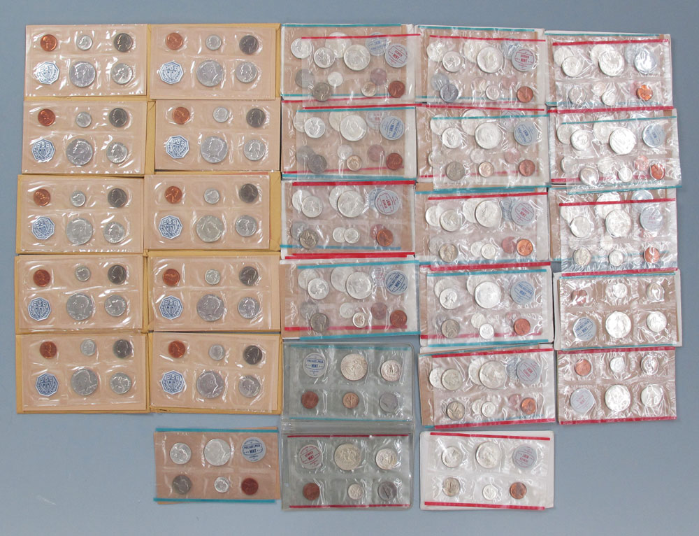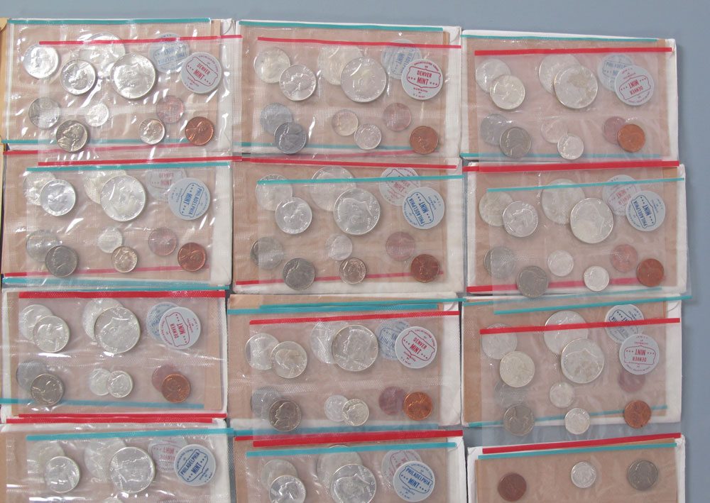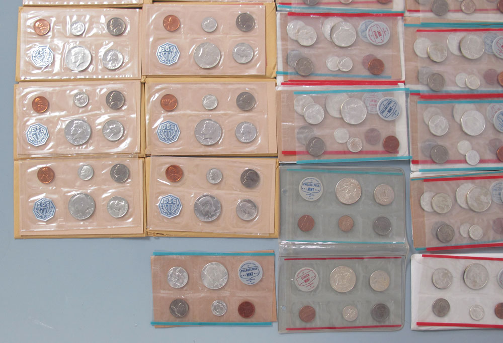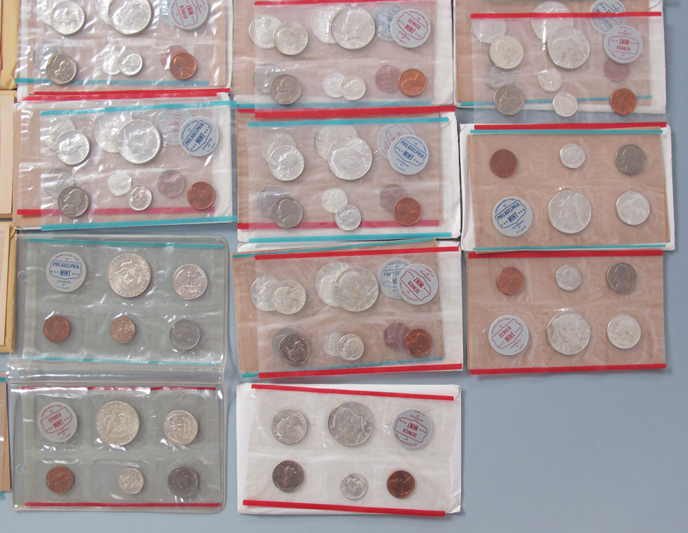 40 PROOF & UNCIRCULATED COIN SHEETS US MINT 1964: To include 10 proof sheets and 30 uncirculated sheets. All have original envelopes. Note each sheet of coins counted individually.