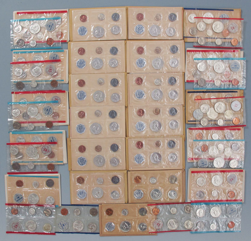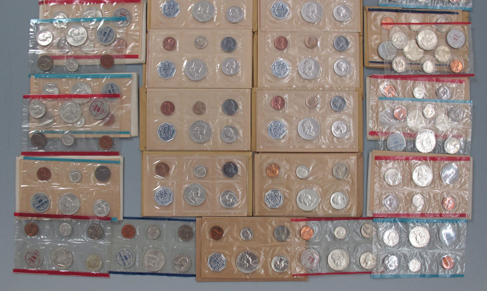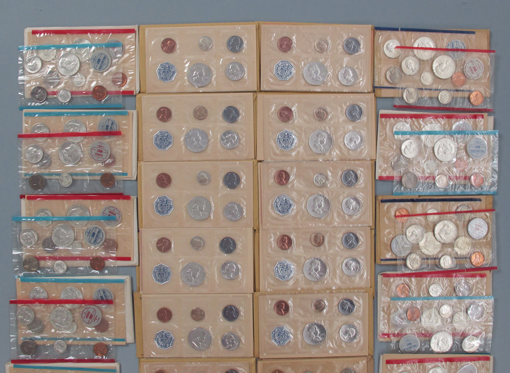 35 PROOF & UNCIRCULATED COIN SHEETS US MINT 1960, 1961, 1963: To include 4 proof sheets from 1960, 5 proof sheets from 1961, 10 proof and 16 uncirculated sheets from 1963. Most have original envelopes. Note each sheet of coins counted individually.