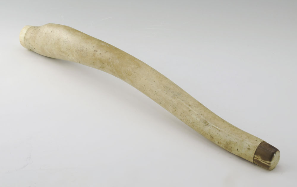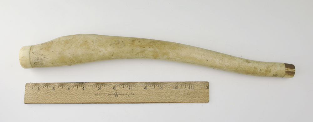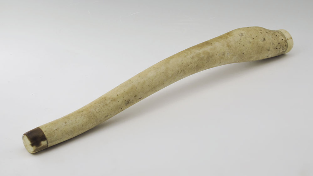 POLISHED WALRUS OOSIK PENILE BONE: Polished shaft with capped ends, approx. 17 3/4'' long overall.