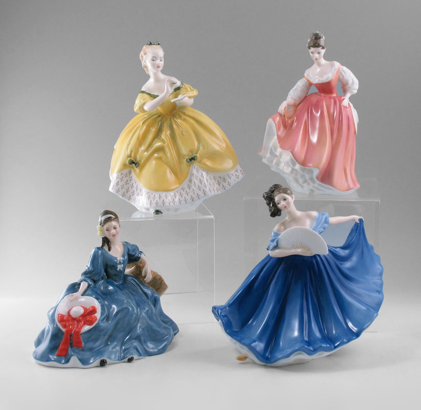 4 ROYAL DOULTON FIGURINES: To include Fair lady (coral pink) HN 2835, The Last Waltz HN 2315, Elyse HN 2429, and Elaine HN 2791.