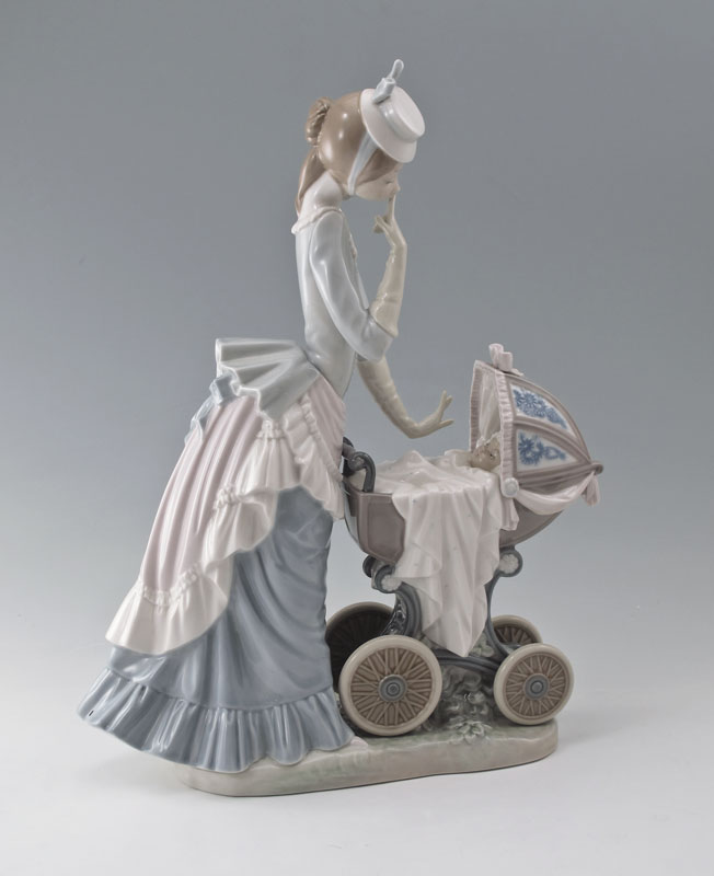 LLADRO PORCELAIN FIGURINE: BABY'S OUTING, #4938, Salvador Debon designer, glazed finish, issued 1976 retired 2000, 12 1/2'' h. x 9'' x 4''.