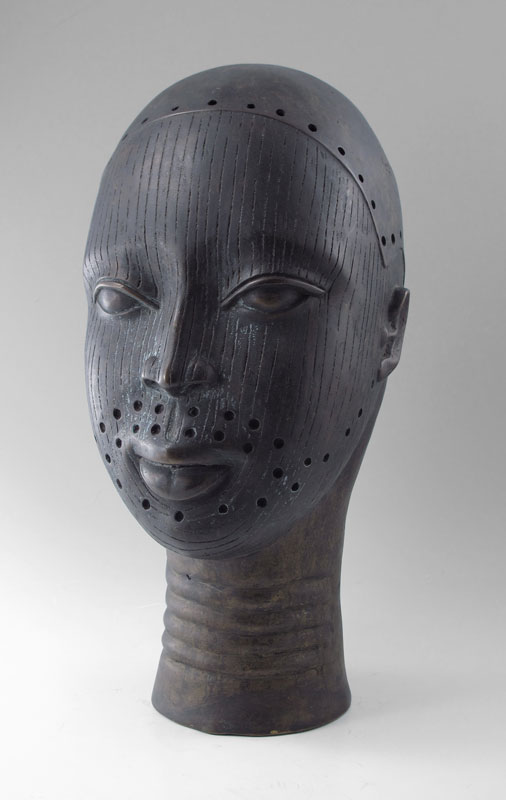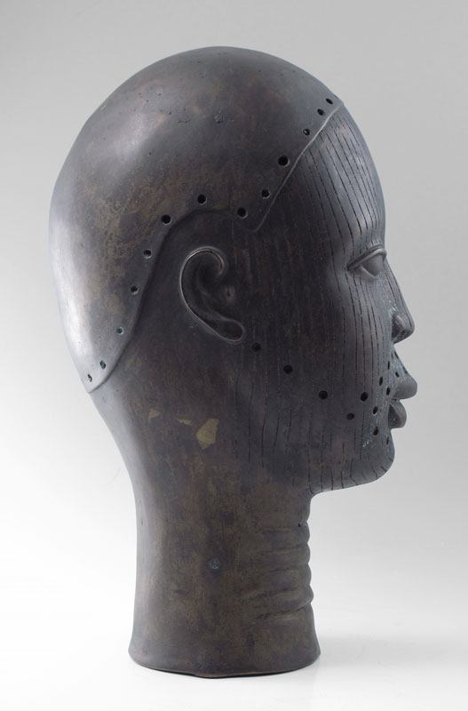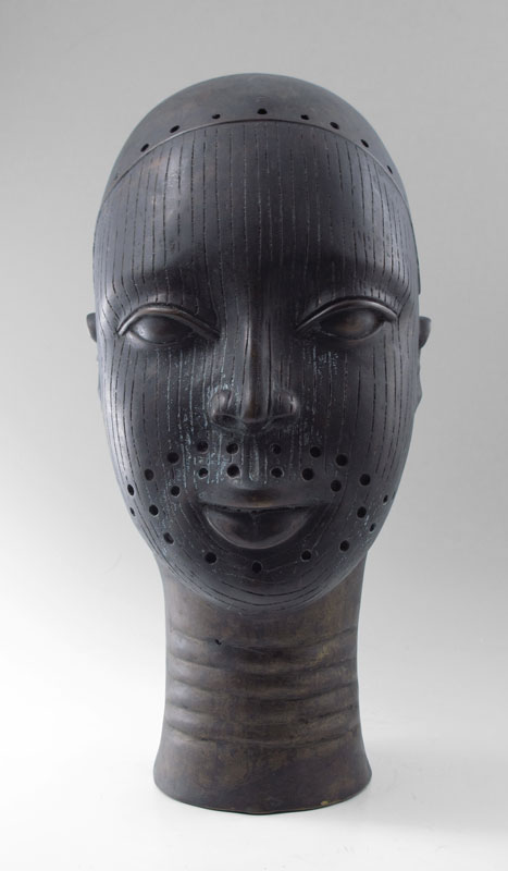 BENIN AFRICAN BRONZE TRIBAL EFE HEAD: 16'' h.