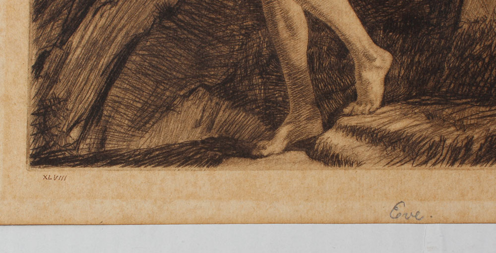 FLINT, Sir William Russell, (Scottish, 1880-1969): Eve'', Etching, 8 3/4'' x 13 1/2'' with margins, signed lower right, titled in the margin and numbered 48, scattered inscriptions in the margins, unframed.