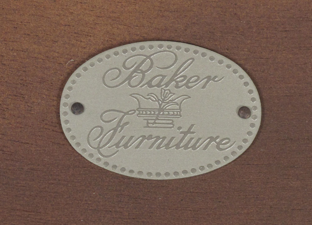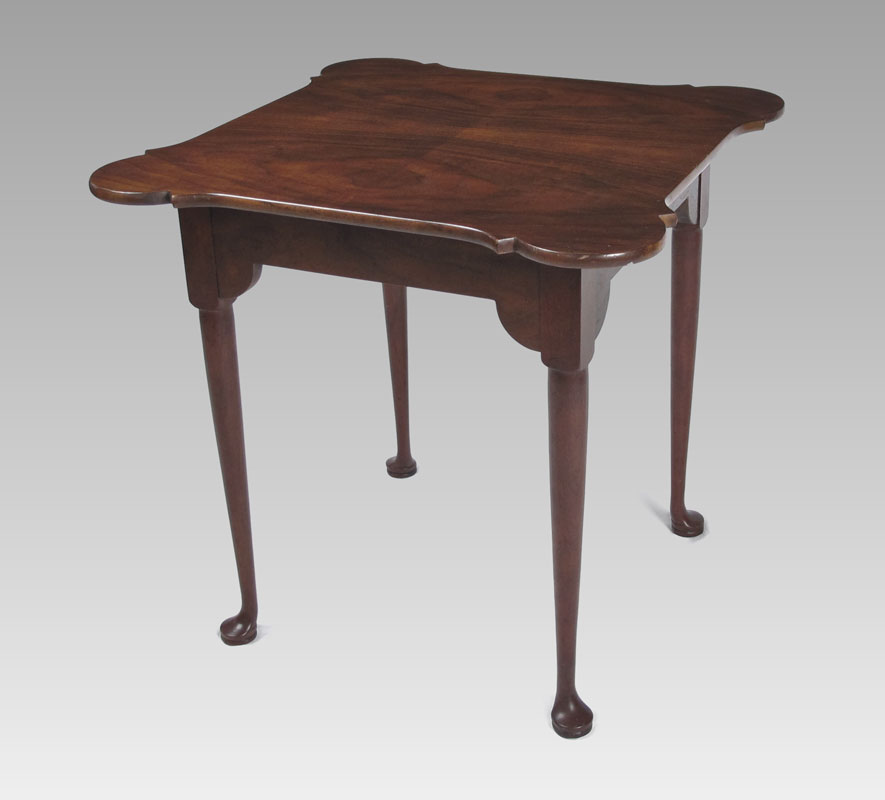 BAKER FURNITURE QUEEN ANNE STYLE TEA TABLE: With cookie corners, metal Baker nameplate. 25'' x 25'' x 25''.