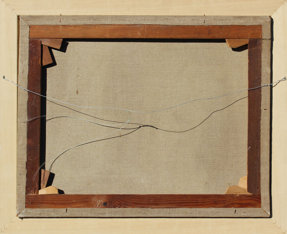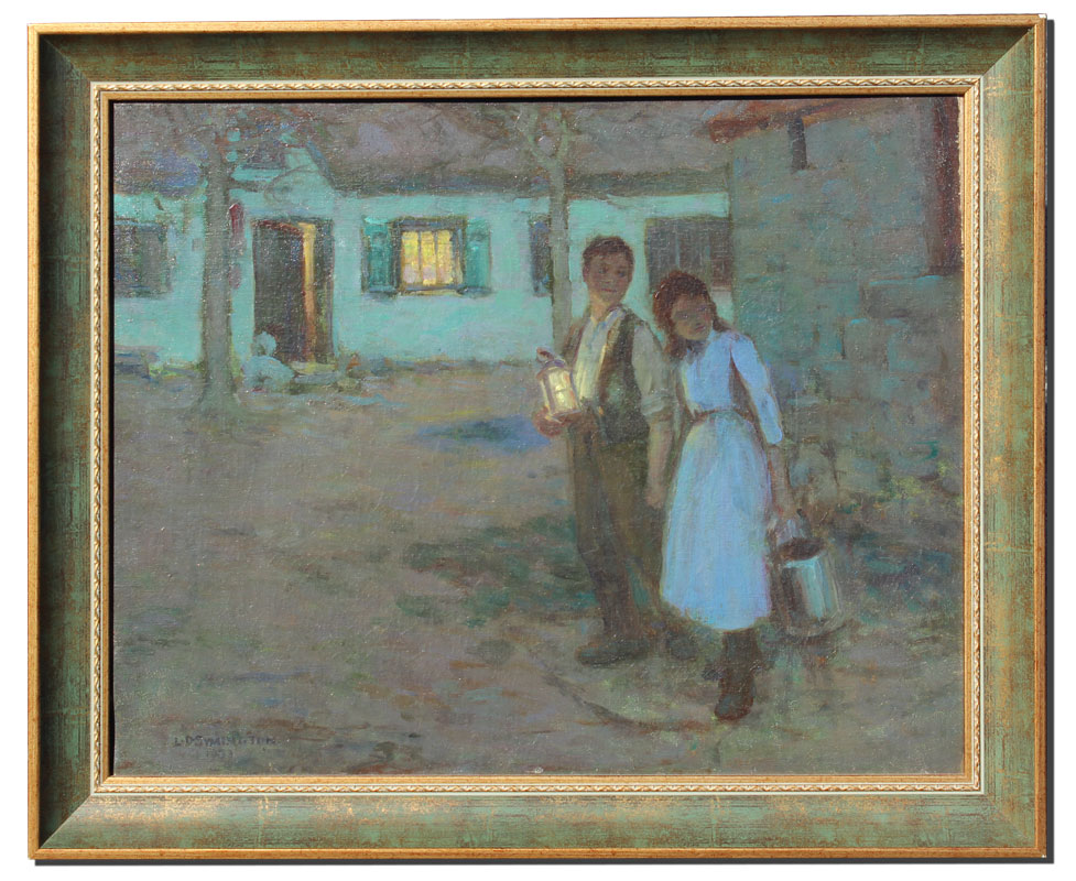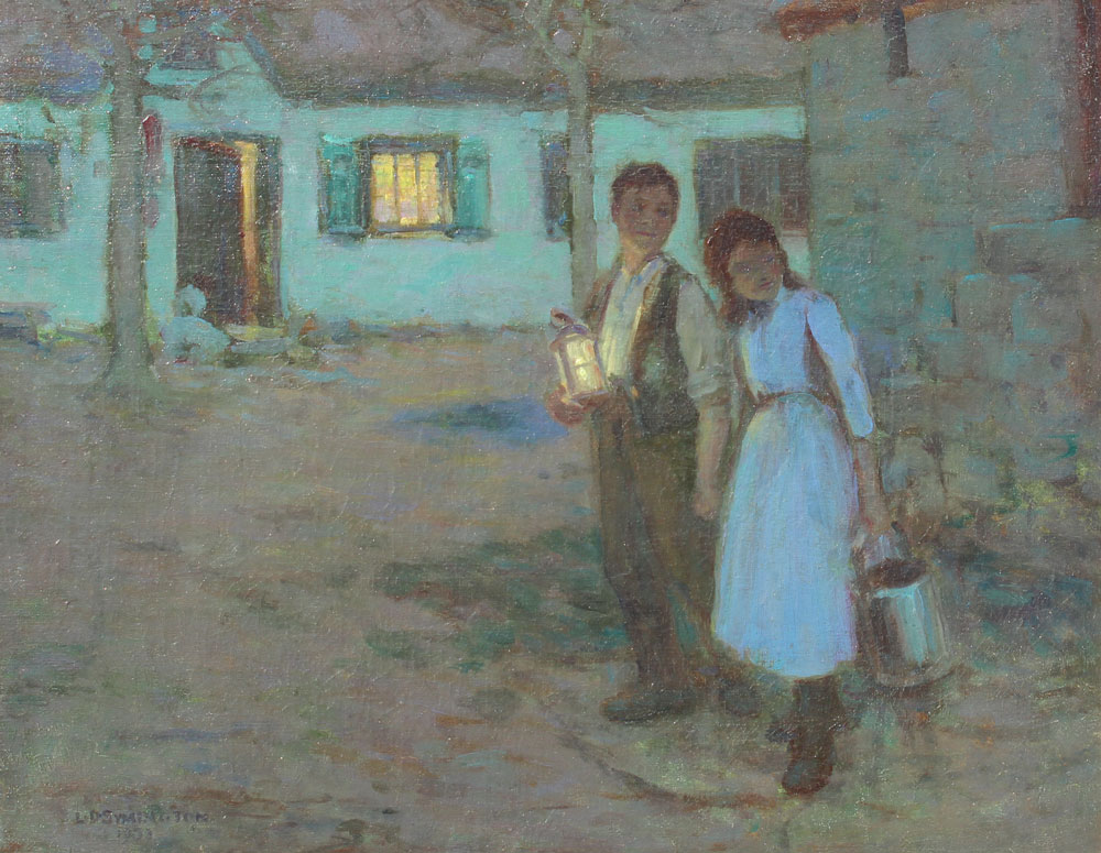 SYMINGTON, L. D., (English, 19th/20th C.): Nocturnal Scene With Young Boy and Girl Peering Uneasily Into the Night, Oil/Canvas, 16'' x 20'', signed lower left, dated 1903, custom painted frame, 19'' x 23''.