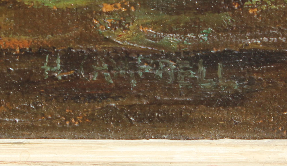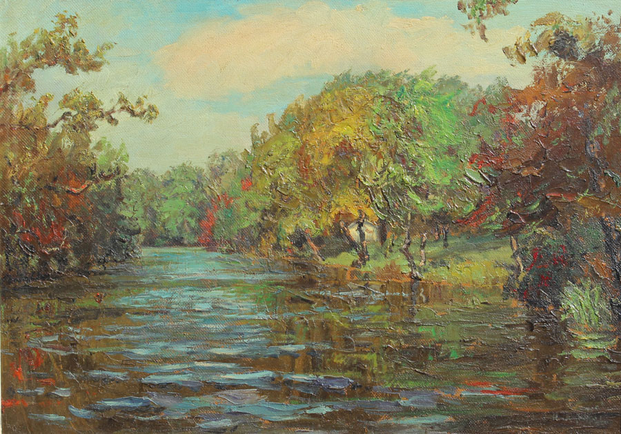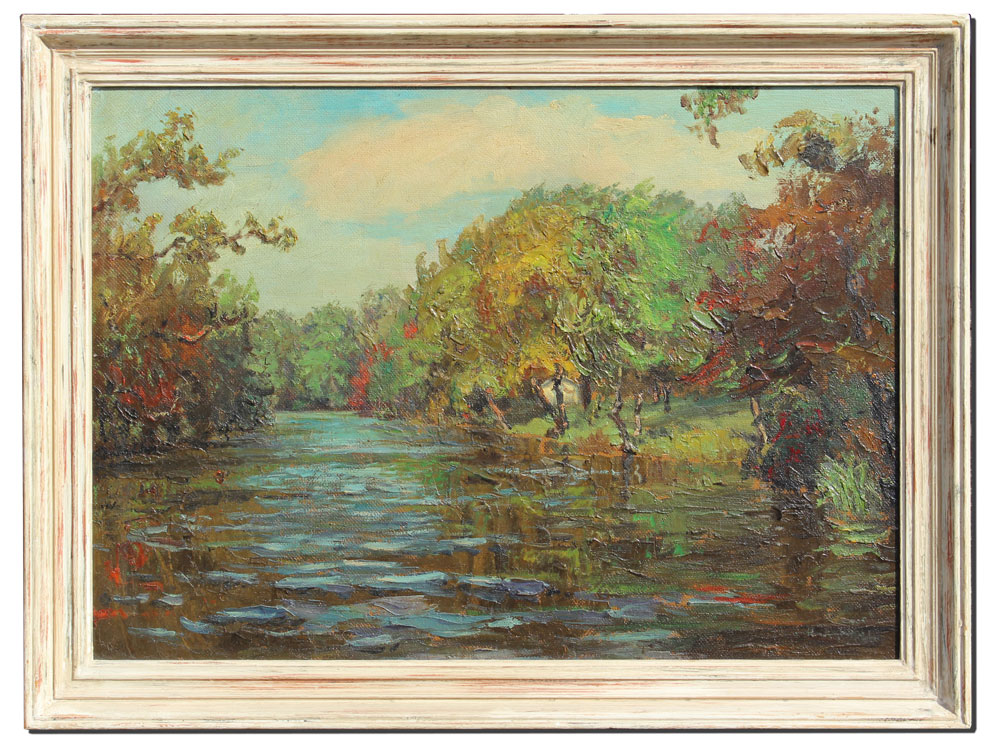 CAMPBELL, Hugh, (American, 1905-1997): River Scene, Oil/Masonite, 20'' x 28'', signed lower right, period painted frame, 24 1/2'' x 32 1/4''.