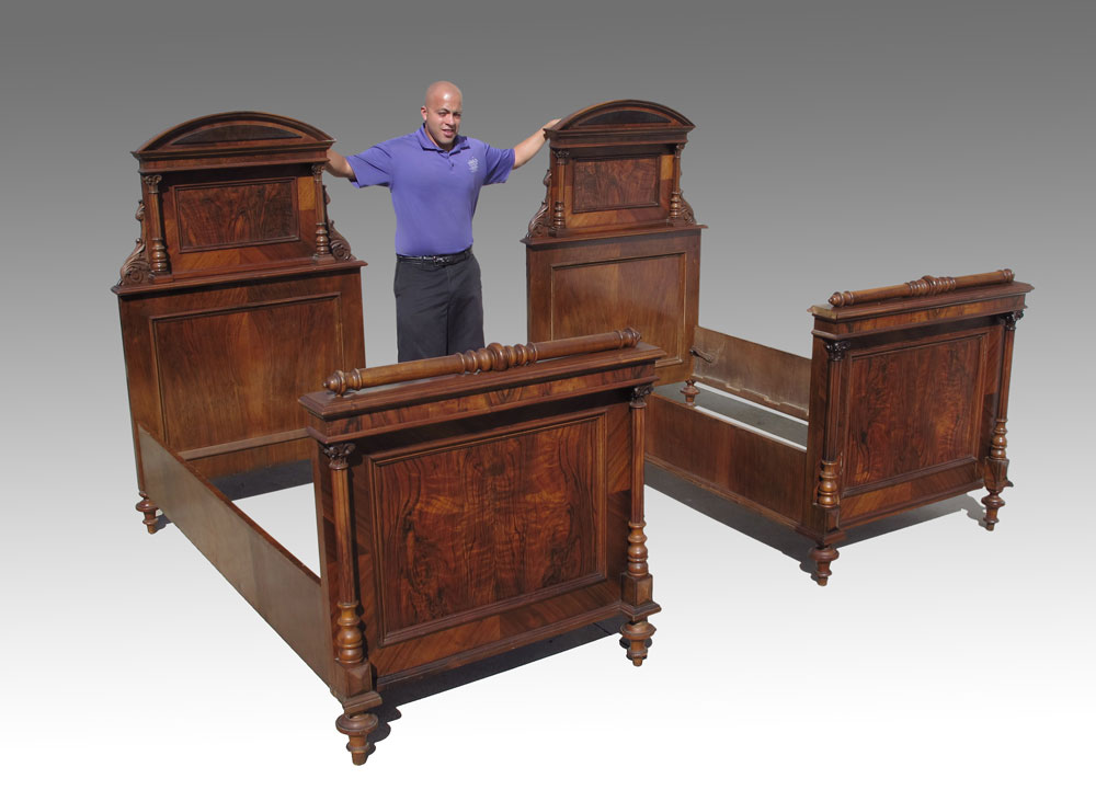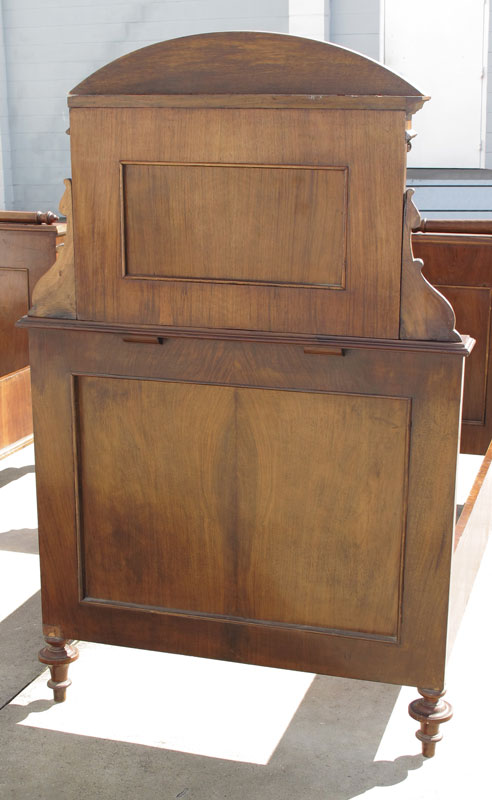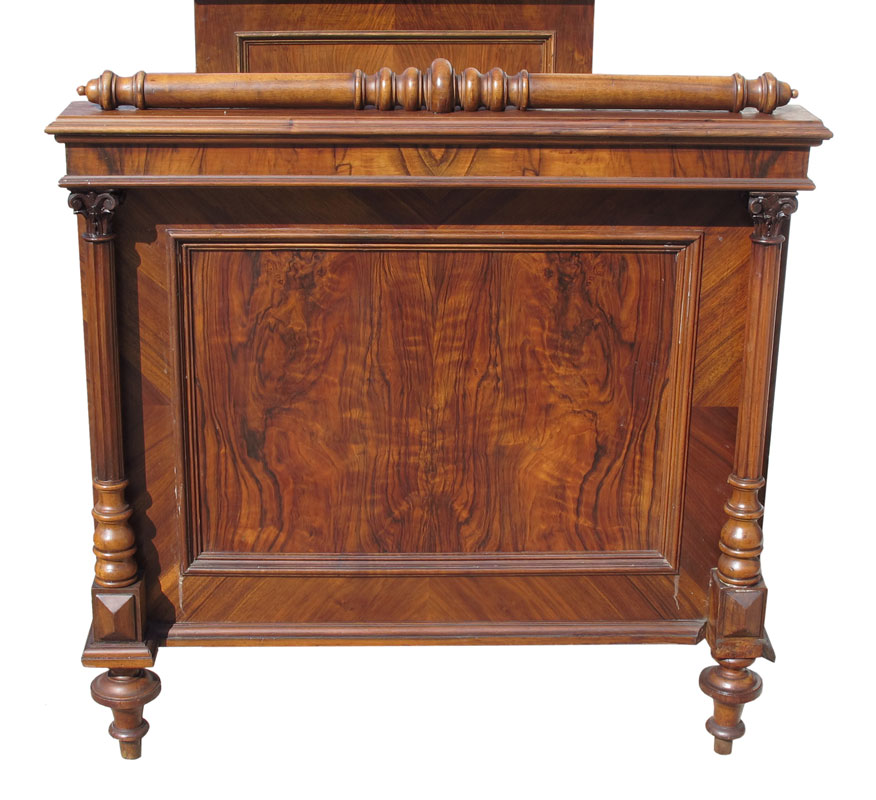 PAIR 19TH CENTURY MAHOGANY BEDS: Carved full columns and foliate designs. Headboard 64'' h. x 40 3/4'' x 4 3/4'', foot board 41 1/2'' h.