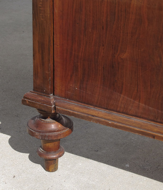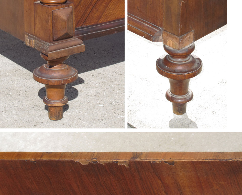 CONDITION: Note missing trim, chips to veneer. Shippers note, breaks down for ease of shipping.