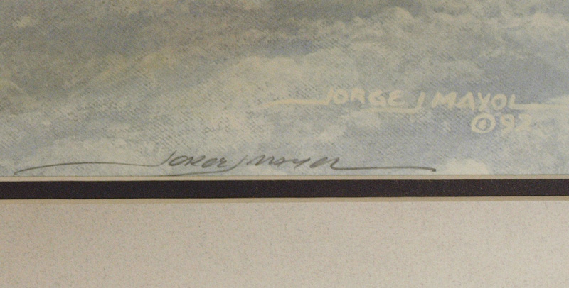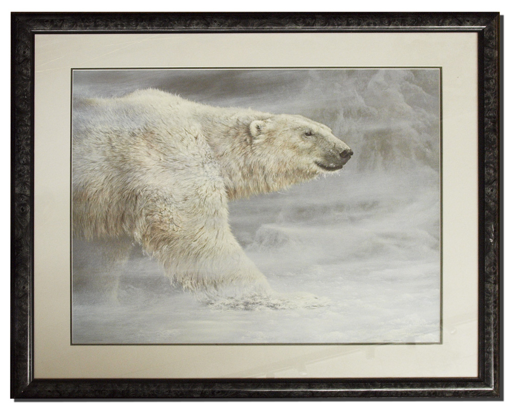 MAYOL, Jorge, (Argentina, 20th C.): Polar Bear, Offset Lithograph, sight size 28'' x 35'', pencil signed lower right, numbered 2029/2088, custom frame with minor wear, 40'' x 47''.
