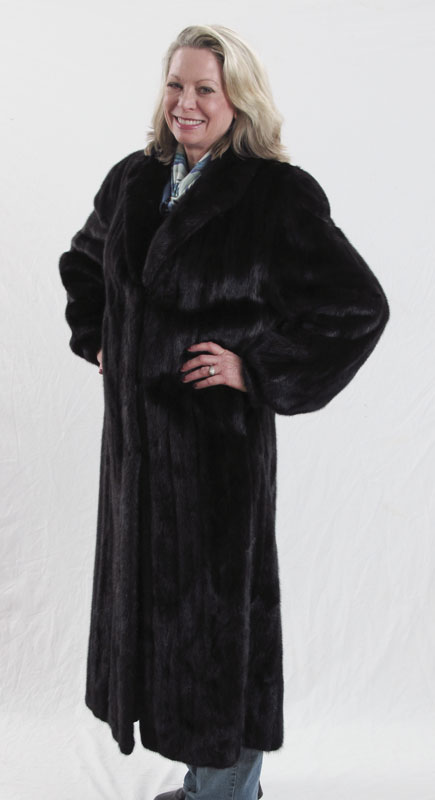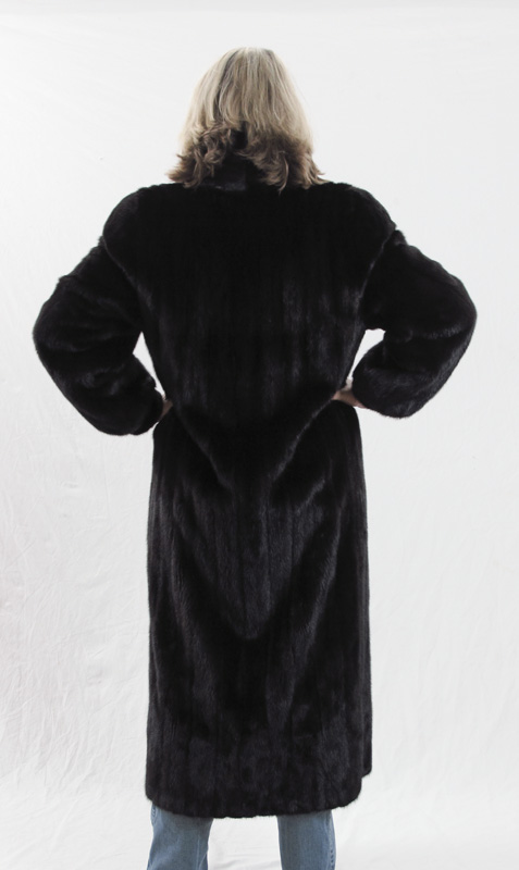 A MOST LUXURIOUS FULL LENGTH BLACK MINK COAT: Long lapel, velvet lined slit pockets, also pocket in the lining. Soft and supple. 50''L.