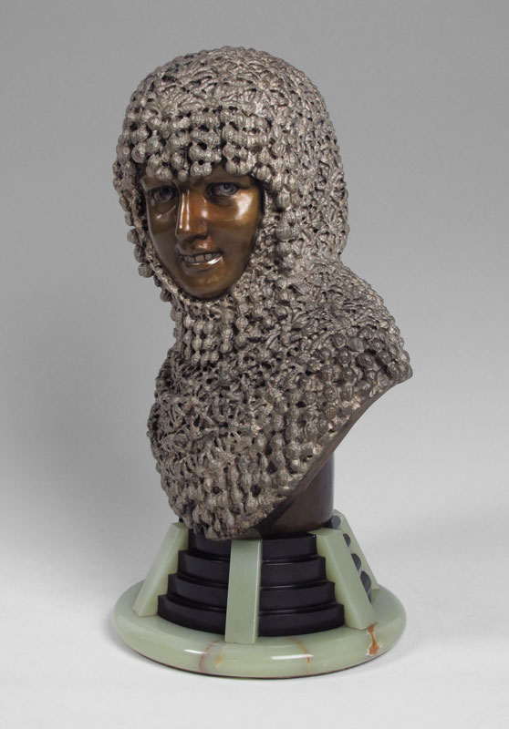DECO DANCER BRONZE BUST IN THE STYLE OF CHIPARUS: Affixed to Custom Onyx Base, 20 1/2'' x 14 1/2'' x 10 1/2'', spuriously signed Etling/Chiparus.